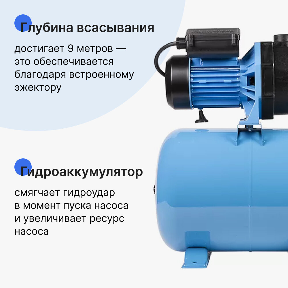 - Высокая производительность - позволяет обеспечить водой несколько точек потребления