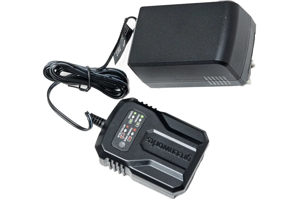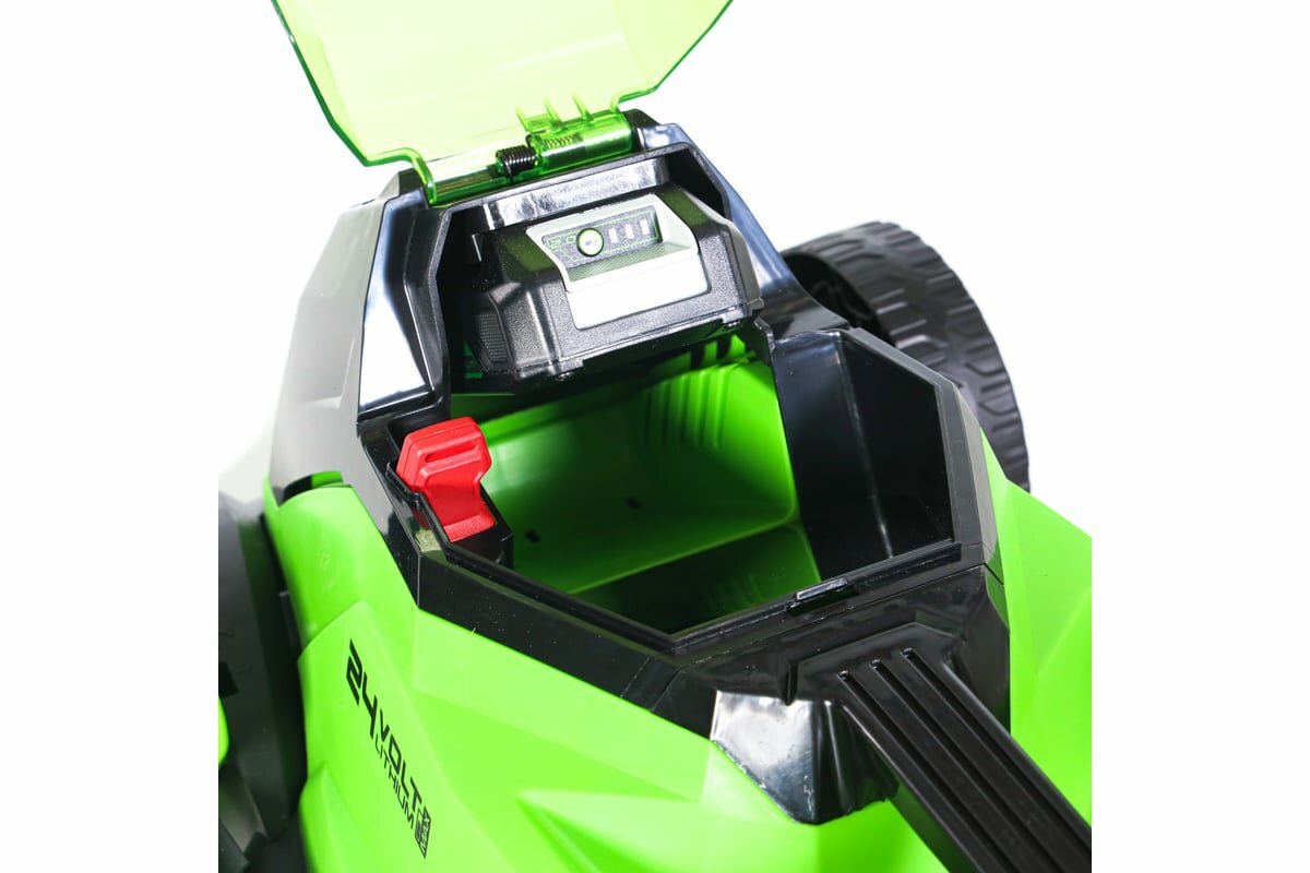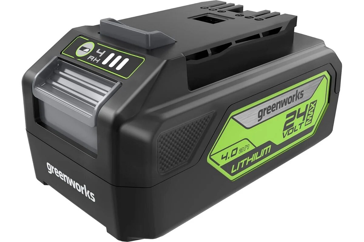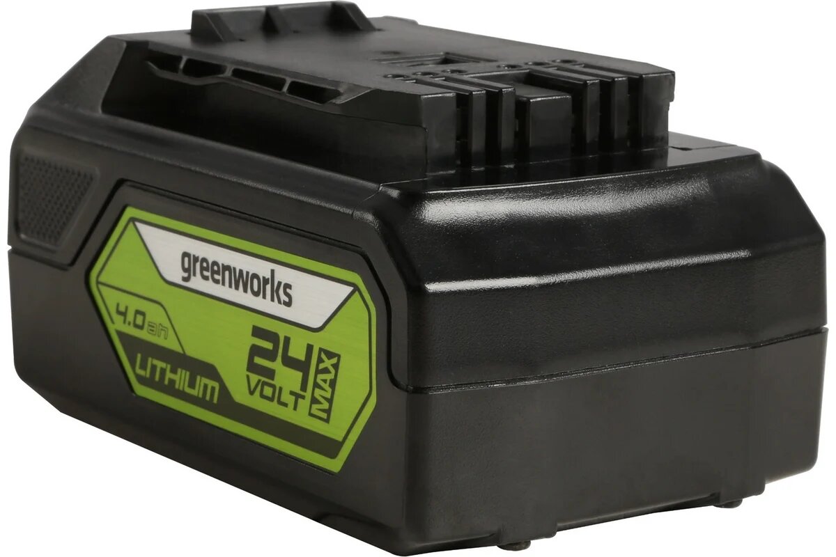 - Единая аккумуляторная система Greenworks 24V - работа от Li-ion аккумулятора 24V совместимого c 70 инструментами для сада, дома и мастерской из линейки Greenworks 24V