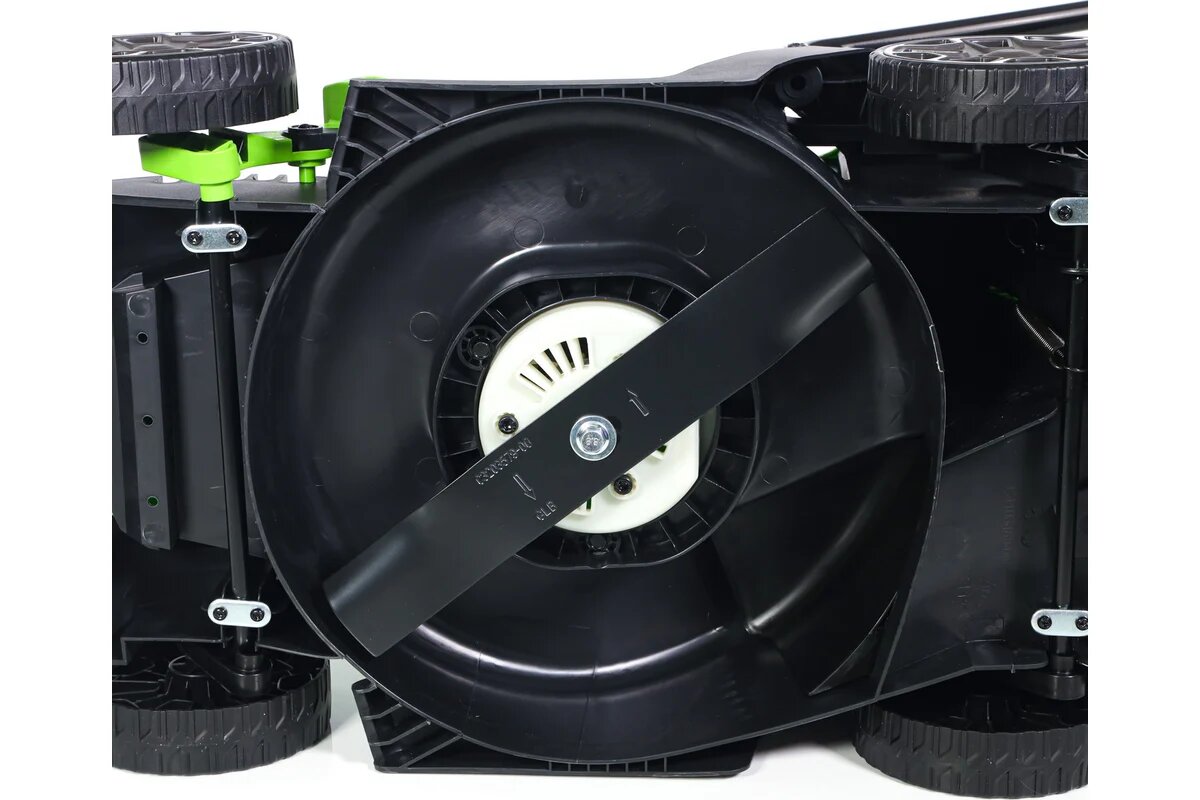 - Центральная регулировка высоты скашивания - высота скашивания удобно регулируется при помощи рычага на корпусе