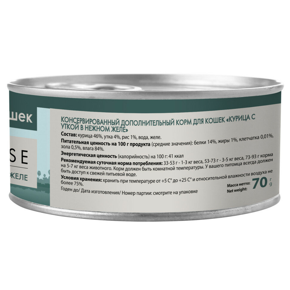 Мнямс консервы для кошек курица с уткой в нежном желе 70 гКонсервы для кошек «Мнямс» состоят исключительно из отборных натуральных компонентов и не содержат сою, искусственные красители и усилители вкуса. В процессе производства консервов используется только отборное парное и охлажденное, а не замороженное сырье. Консервы из курицы изготовлены из нежного белого мяса куриных грудок с добавлением мяса утки.