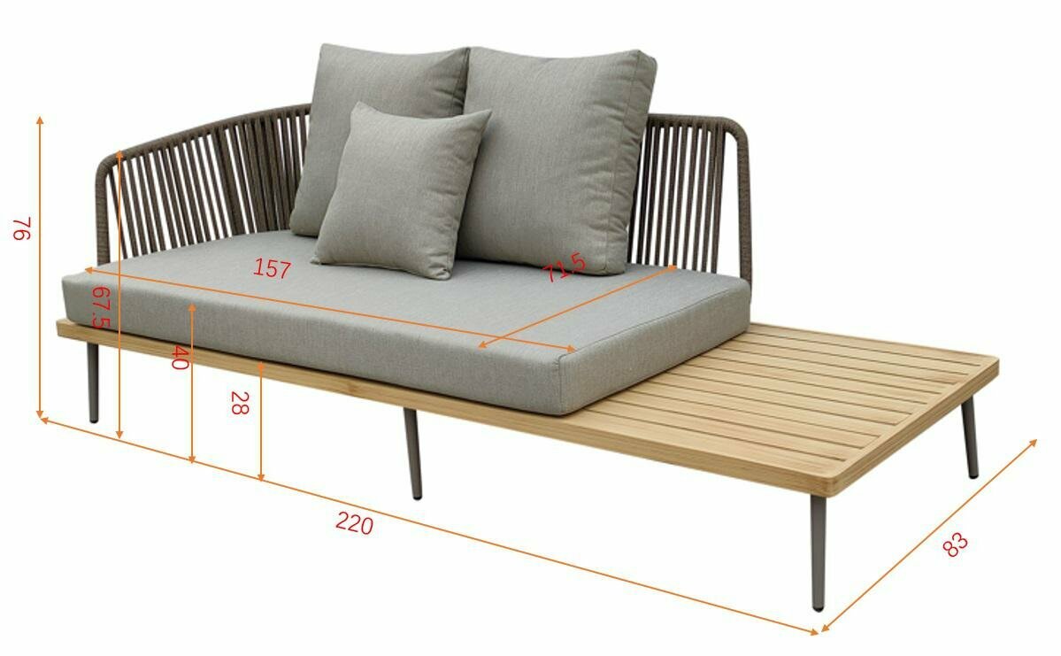 Диван Bayley трехместный левосторонний уличный серый Garda Decor (129KN-03047)