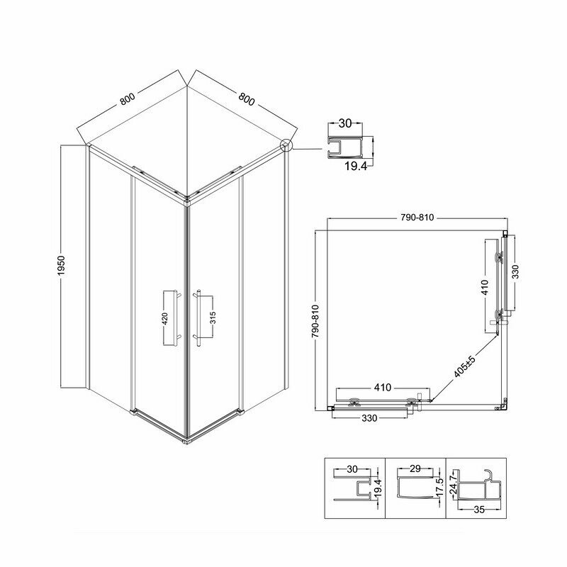 - Размеры (ШхВхД): 810x1950х810 мм.