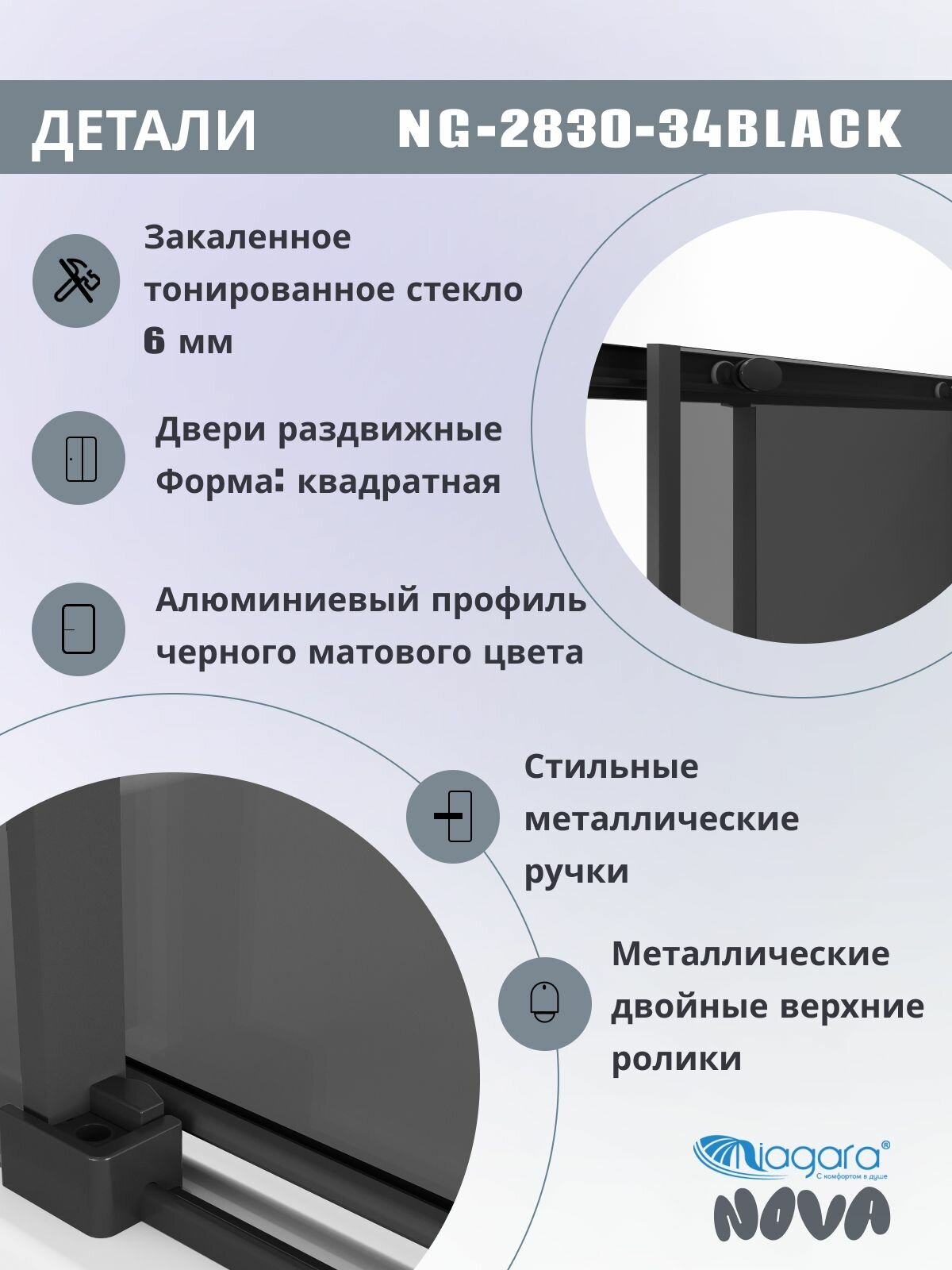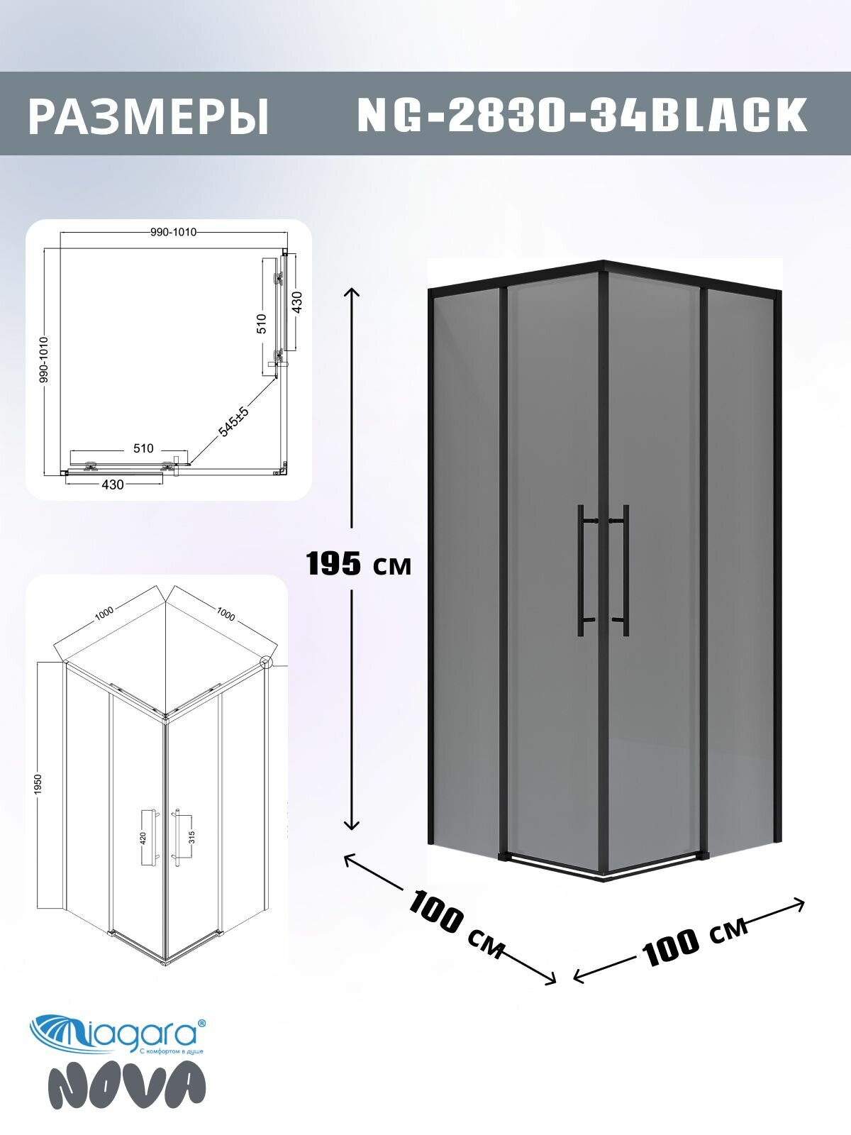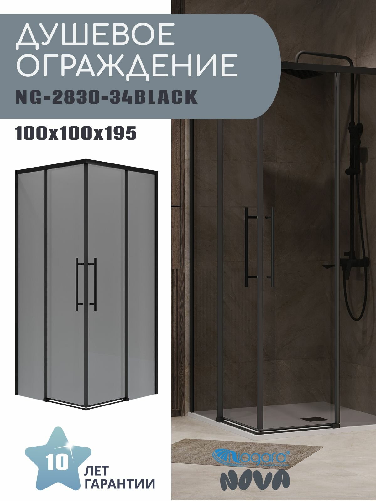 Модель: Nova 100x100 NG-2830-34BLACK стекло тонированное, профиль черный матовый, без поддона