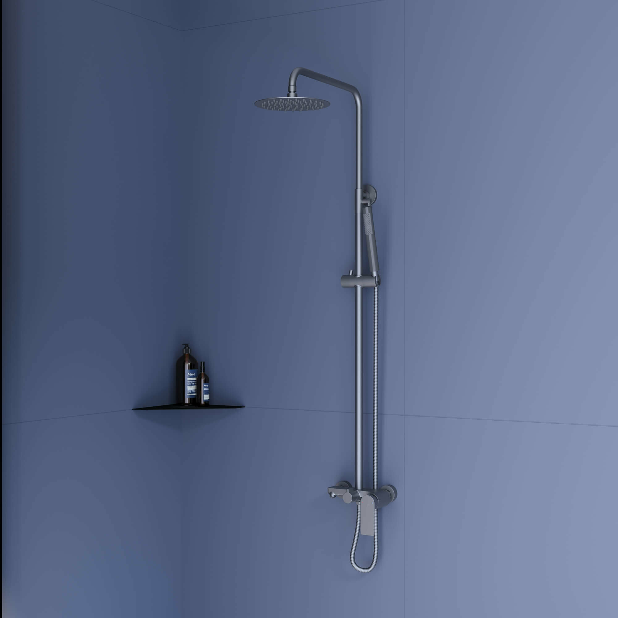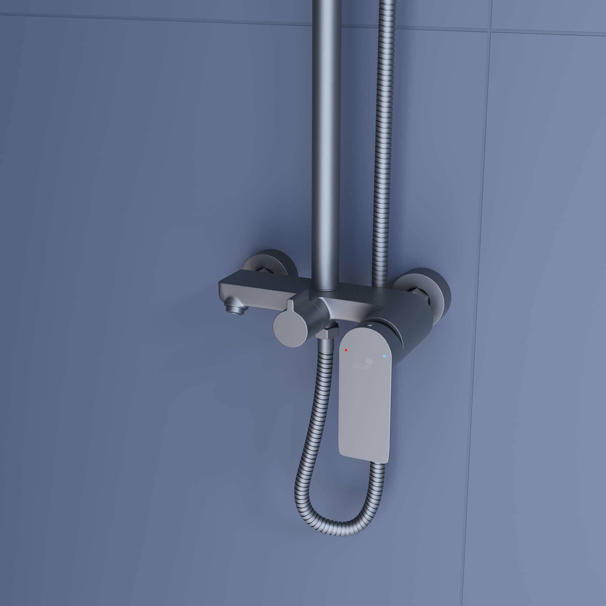 Душевая стойка RGW SP-27GrЦвет: серый Особенности: верхний душ выполнен из нержавеющей стали AISI 304 с шарнирным креплением, что позволяет выбрать необходимый угол направления воды диаметр верхнего душа - 200 мм стальной шланг ручного душа, длина 1.5 м ручной душ из нержавеющей стали AISI 304 держатель ручного душа с регулировкой высоты стальная штанга с регулировкой высоты головного душа компактный излив смеситель с керамическим картриджем и дивертором для переключение режимов, выполнен из сантехнической латуни быстрый настенный монтаж подключение 1/2 дюйма Страна бренда: Германия