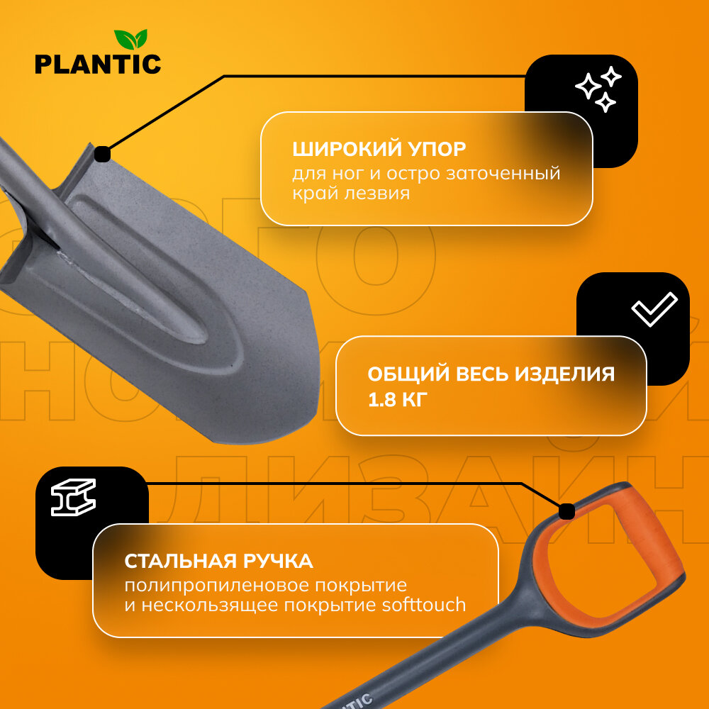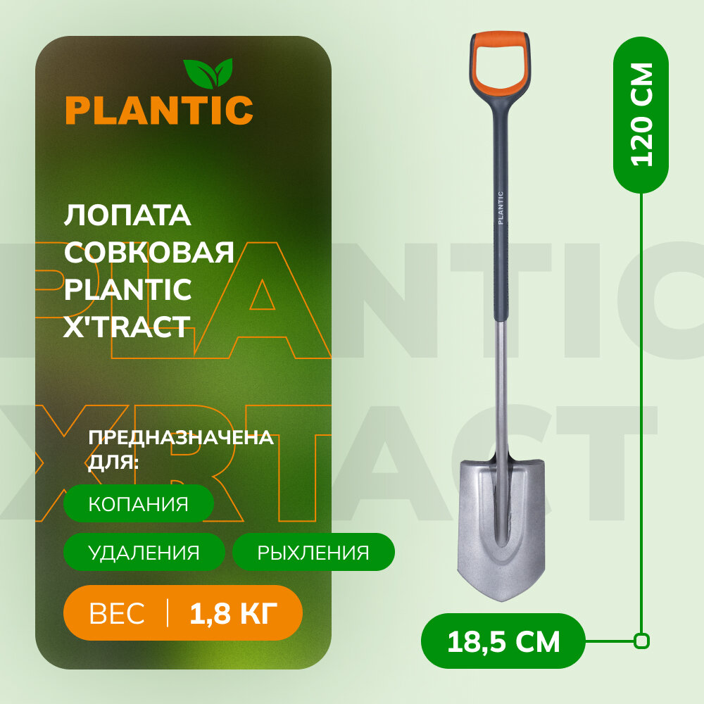 Штыковая лопата Plantic X'tract — практичный инструмент для сада и загородного участка. Предназначена для копания и рыхления как твердого, так и мягкого грунта. Лезвие из высокопрочной углеродистой стали устойчиво к ржавчине. Острая режущая кромка перерезает корни. Ребро жесткости на рабочей поверхности — предотвращает деформацию металла. D-образная ручка с покрытием soft-touch — не скользит в ладонях, удобно держать в перчатках, удобный хват двумя руками. Есть широкий упор для ноги. Вес 1,8 кг — облегченная конструкция.