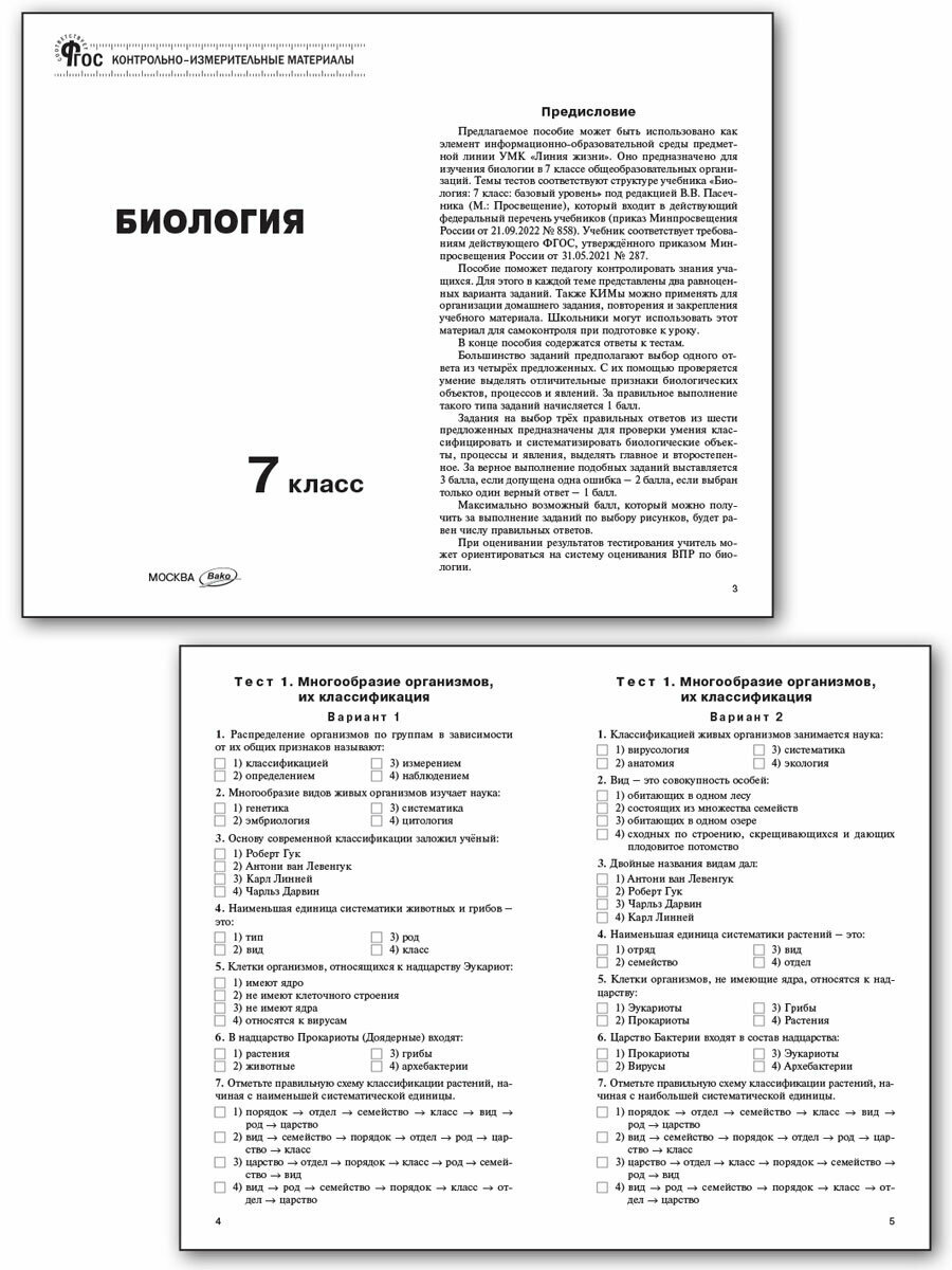 Биология. 7 класс. Контрольно-измерительные материалы. ФГОС (Николай Александрович Богданов); Вако, 2025