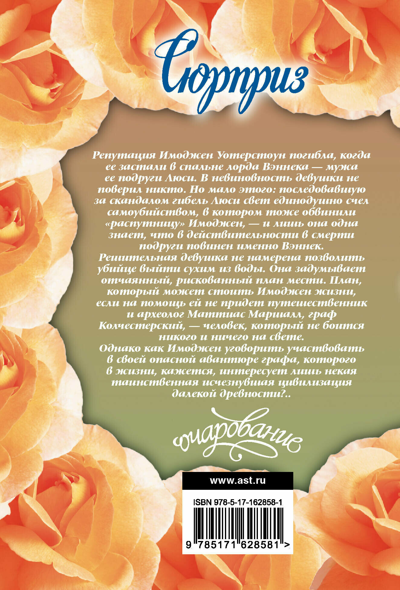 Репутация Имоджен Уотерстоун погибла, когда ее застали в спальне лорда Вэннека - мужа ее подруги Люси. В невиновность девушки не поверил никто. Но мало этого: последовавшую за скандалом гибель Люси свет единодушно счел самоубийством, в котором тоже обвинили "распутницу" Имоджен, - и лишь она одна знает, что в действительности в смерти подруги повинен именно Вэннек. Решительная девушка не намерена позволить убийце выйти сухим из воды. Она задумывает отчаянный, рискованный план мести. План, который может стоить Имоджен жизни, если на помощь ей не придет путешественник и археолог Маттиас Маршал, граф Колчестерский - человек, который не боится никого и ничего на свете. Однако как Имоджен уговорить участвовать в своей опасной авантюре графа, которого в жизни, кажется, интересует лишь некая таинственная исчезнувшая цивилизация далекой древности?.