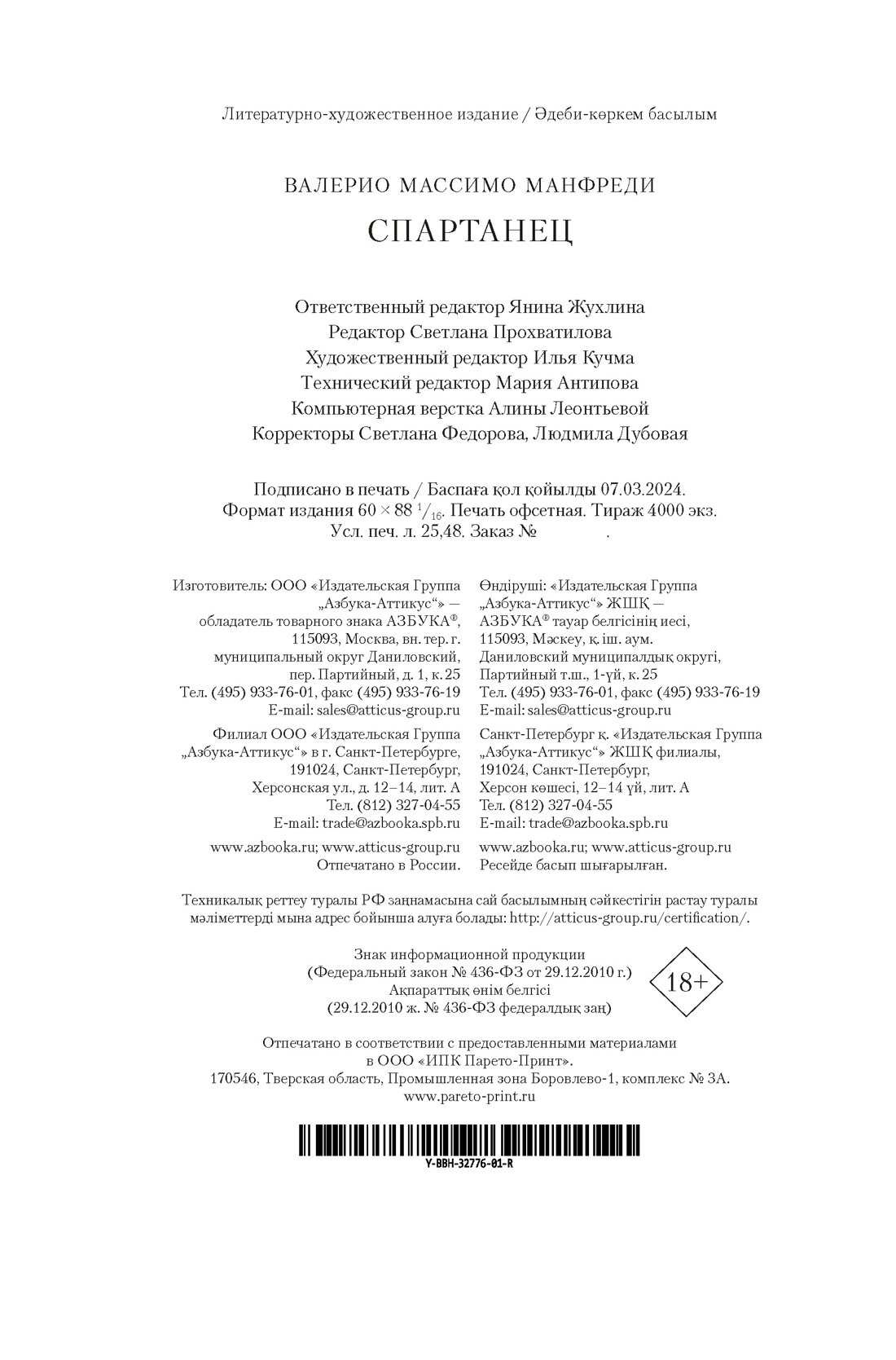 Книга: Спартанец (Валерио Массимо Манфреди); Азбука, 2024