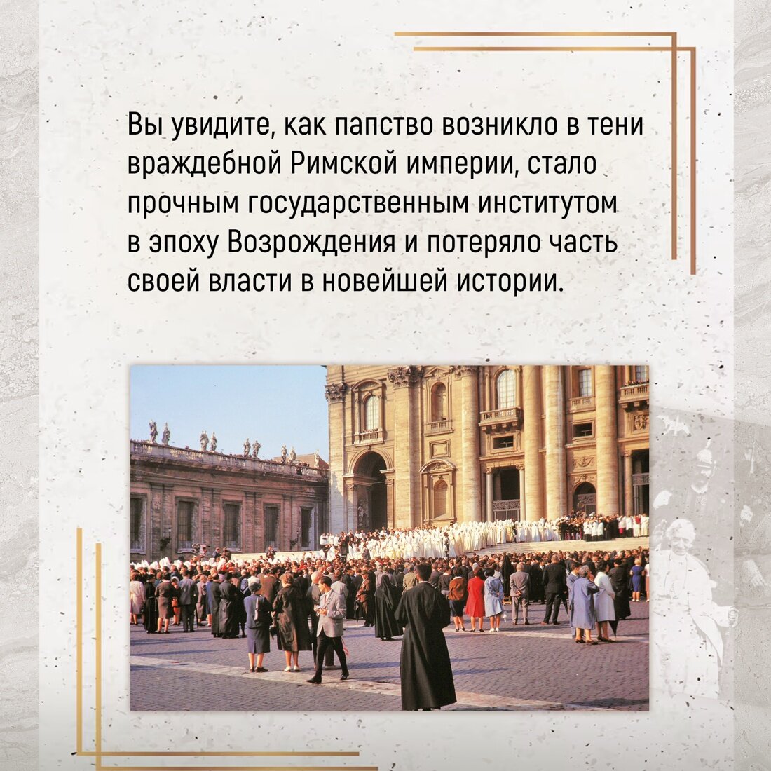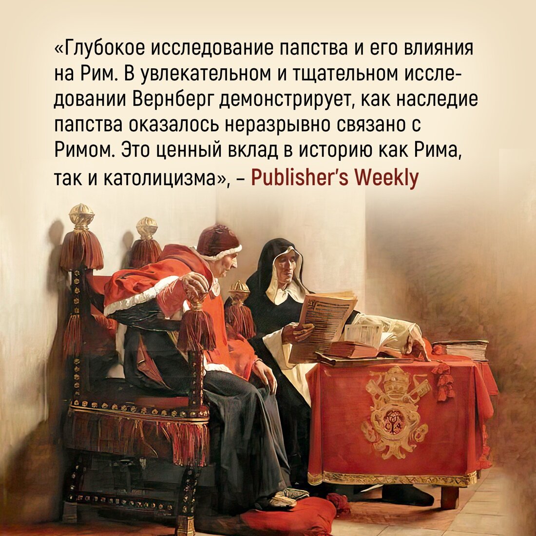 История города Рима вот уже более двух тысячелетий переплетена с историей католической церкви и ее главой — папой римским. Возвышение христианства, конфронтация Церкви и светской власти в Средневековье, папы и антипапы, Реформация и итальянский фашизм – Рим и Ватикан неизменно оказывались в гуще событий. Историк, член Лондонского королевского исторического общества, Джессика Вернберг представляет читателю наиболее полную историю Рима, его пап и его жителей: от апостолов Петра и Павла до папы Франциска. Опираясь на многочисленные и разнообразные источники, Вернберг прослеживает трансформацию церковной власти и ее влияние на Вечный город. Политические интриги, личные истории и неизменная любовь к Риму, тесно переплетаясь между собой, превращают чтение этой книги в увлекательное путешествие по европейской истории. «Папский престол выживает среди меркнущих в анналах прошлого монархий, диктатур и империй. “Рим – это город отголосков”, говоря словами живописца эпохи Возрождения Джотто ди Бондоне». (Джессика Вернберг)