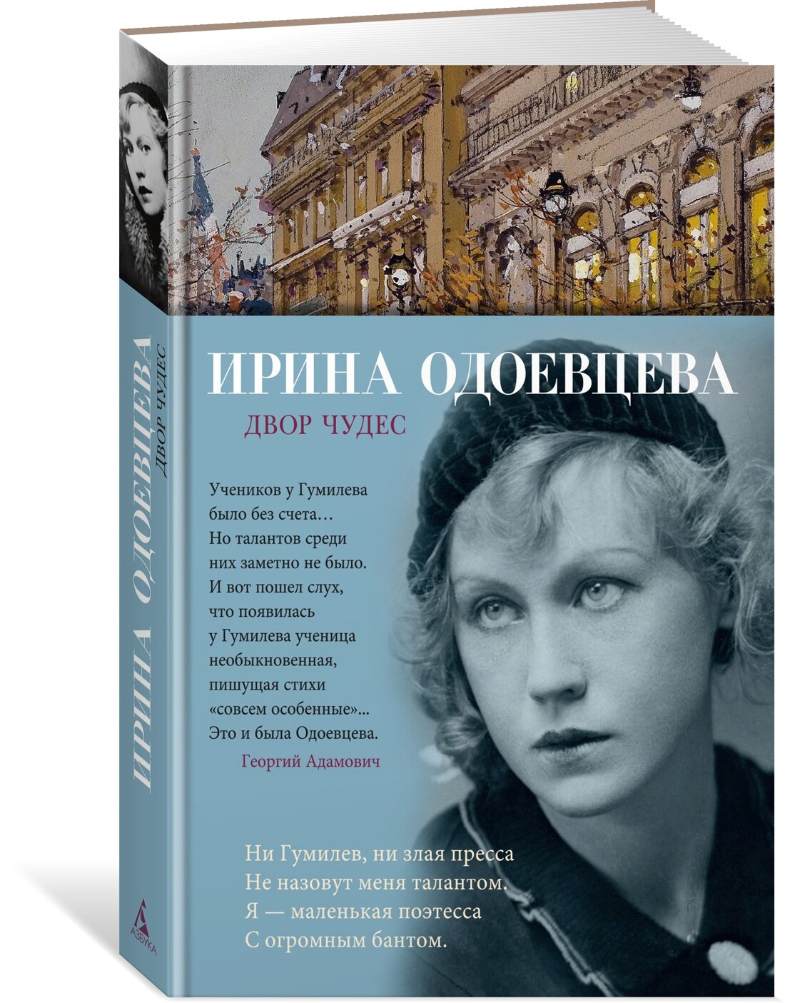 На литературной карте Серебряного века Ирина Одоевцева, «маленькая поэтесса с большим бантом», как она себя называла, и любимая ученица Николая Гумилева, занимает особое место. Ее первый сборник «Двор чудес» (1922) стал заметным событием в литературной жизни и был дружно одобрен критикой. «...Чутье стиля в такой мере, как у Одоевцевой, — признак дарования очень крупного», — писал Владимир Пяст. И даже язвительный Лев Троцкий удостоил Одоевцеву своей похвалы, выделив «Двор чудес» среди «книжечек и книжонок»: «Очень, очень милые стихи». Однако известность пришла к ней еще раньше. На поэтических вечерах юная Одоевцева пользовалась большой популярностью и с блеском читала свои стихи, включая знаменитую «Балладу о толченом стекле». Ее сразу отметил Александр Блок, ею восхищались Корней Чуковский, Михаил Лозинский и Георгий Иванов. В 1922 году Ирина Одоевцева уехала из России и большую часть жизни провела во Франции, но в 1987 году вернулась на родину, где ей довелось увидеть свои книги изданными в СССР огромными тиражами. Помимо мемуарной прозы, творчество Одоевцевой включает несколько романов, переведенных на многие языки, а также семь поэтических сборников, ставших неотъемлемой частью русской поэзии ХХ века.