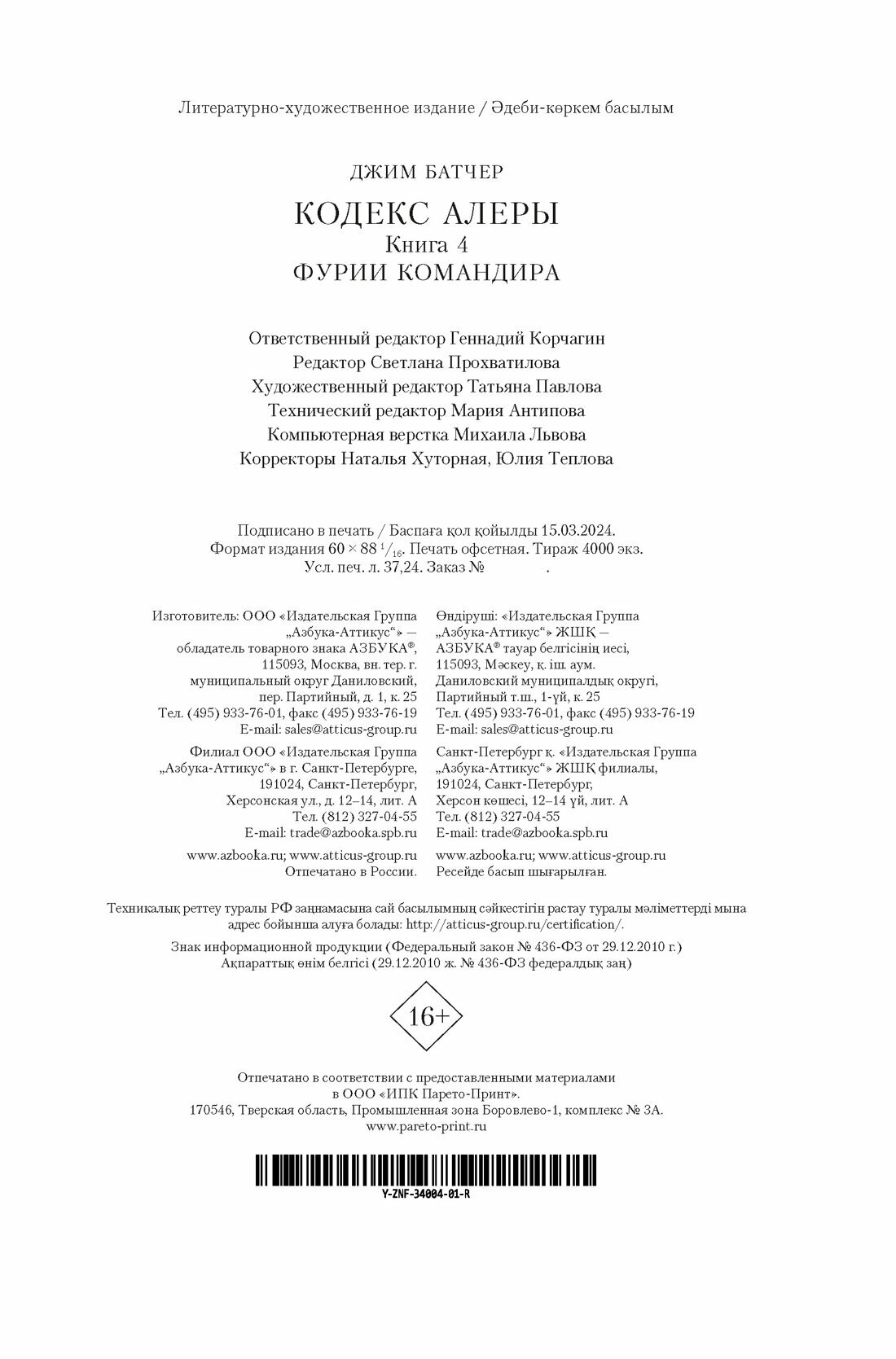 Кодекс Алеры. Книга 4. Фурии командира (Джим Батчер); Азбука, 2024