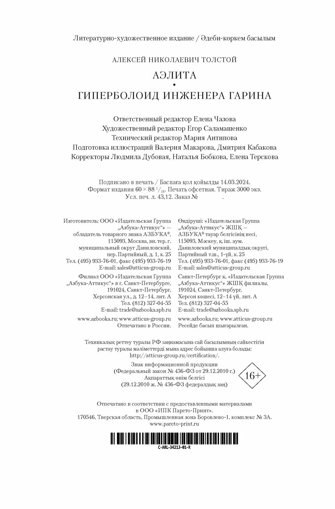 Аэлита. Гиперболоид инженера Гарина (Алексей Николаевич Толстой); Азбука, 2024