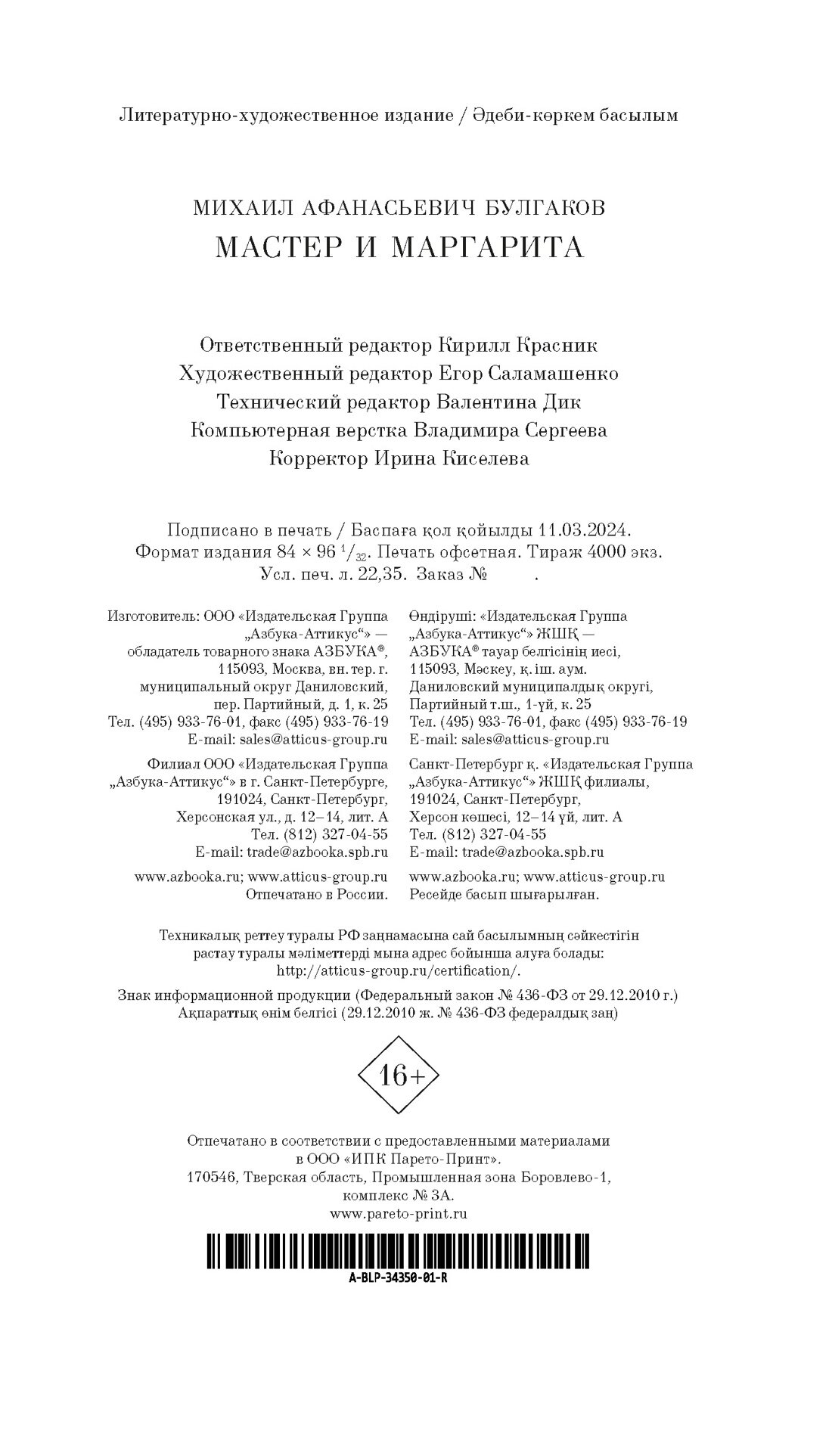 Книга: Мастер и Маргарита (Михаил Афанасьевич Булгаков); Азбука, 2024