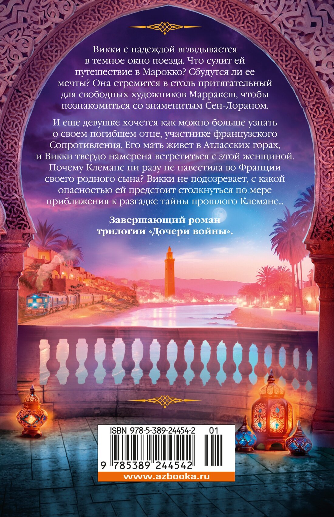 Викки с надеждой вглядывается в темное окно поезда. Что сулит ей путешествие в Марокко? Сбудутся ли ее мечты? Она стремится в столь притягательный для свободных художников Марракеш, чтобы познакомиться со знаменитым Сен-Лораном. И еще девушке хочется как можно больше узнать о своем погибшем отце, участнике французского Сопротивления. Его мать живет в Атласских горах, и Викки твердо намерена встретиться с этой женщиной. Почему Клеманс ни разу не навестила во Франции своего родного сына? Викки не подозревает, с какой опасностью ей предстоит столкнуться по мере приближения к разгадке тайны прошлого Клеманс... Завершающий роман трилогии «Дочери войны». Впервые на русском!