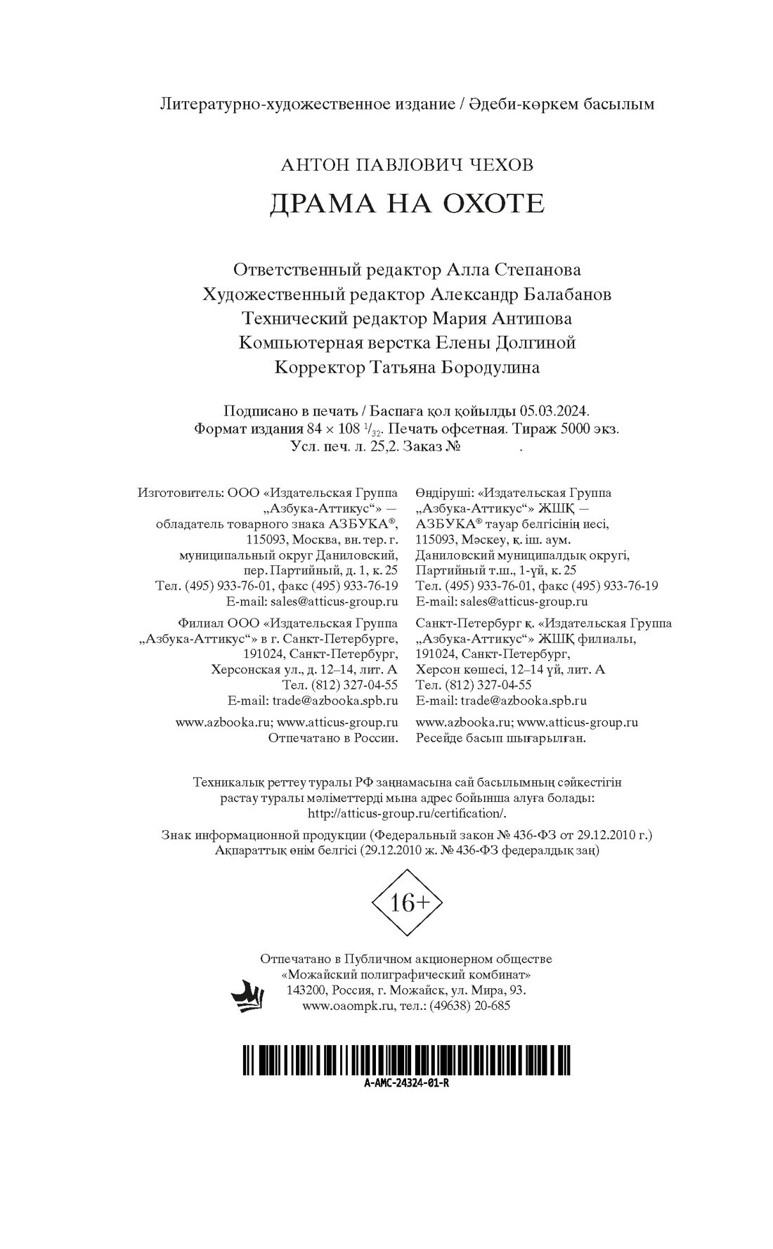 Сервис сравнения цен СкидкаГИД предлагает сравнить цены на товар «Книга: Драма на охоте (Чехов Антон Павлович); Азбука Издательство, 2024»