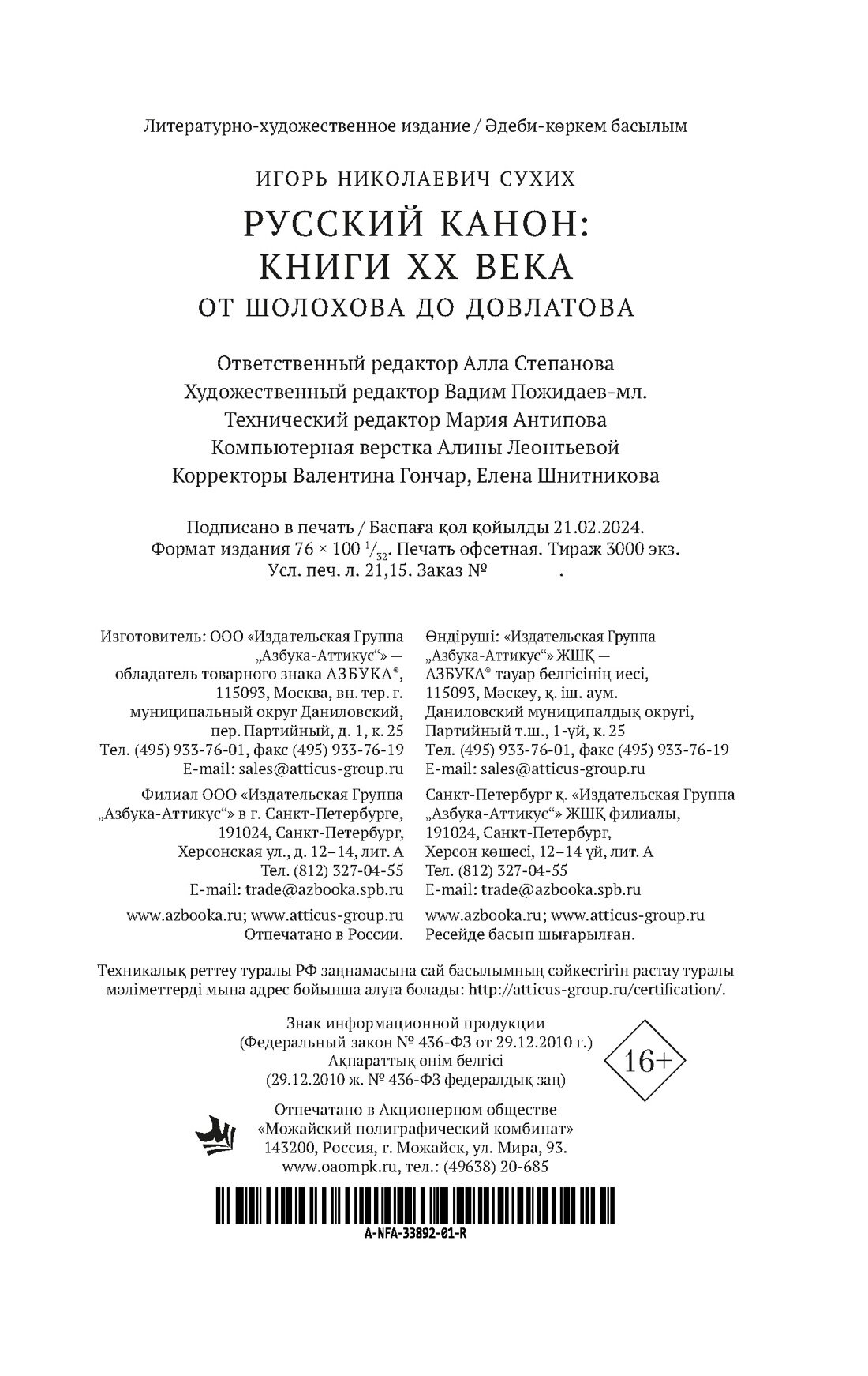 Русский канон: Книги ХХ века: От Шолохова до Довлатова (Игорь Николаевич Сухих); Азбука, 2024