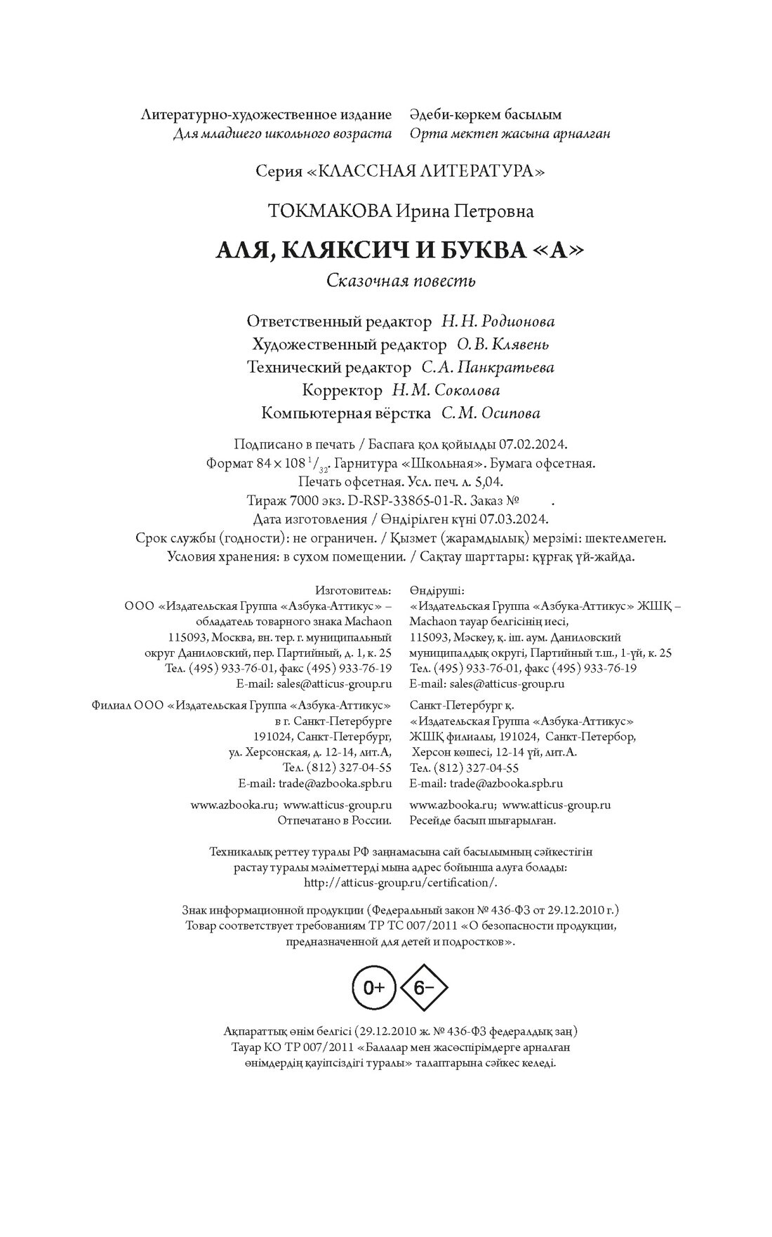 Аля Кляксич и буква «А»: сказочная повесть (Токмакова Ирина Петровна); Махаон, 2024