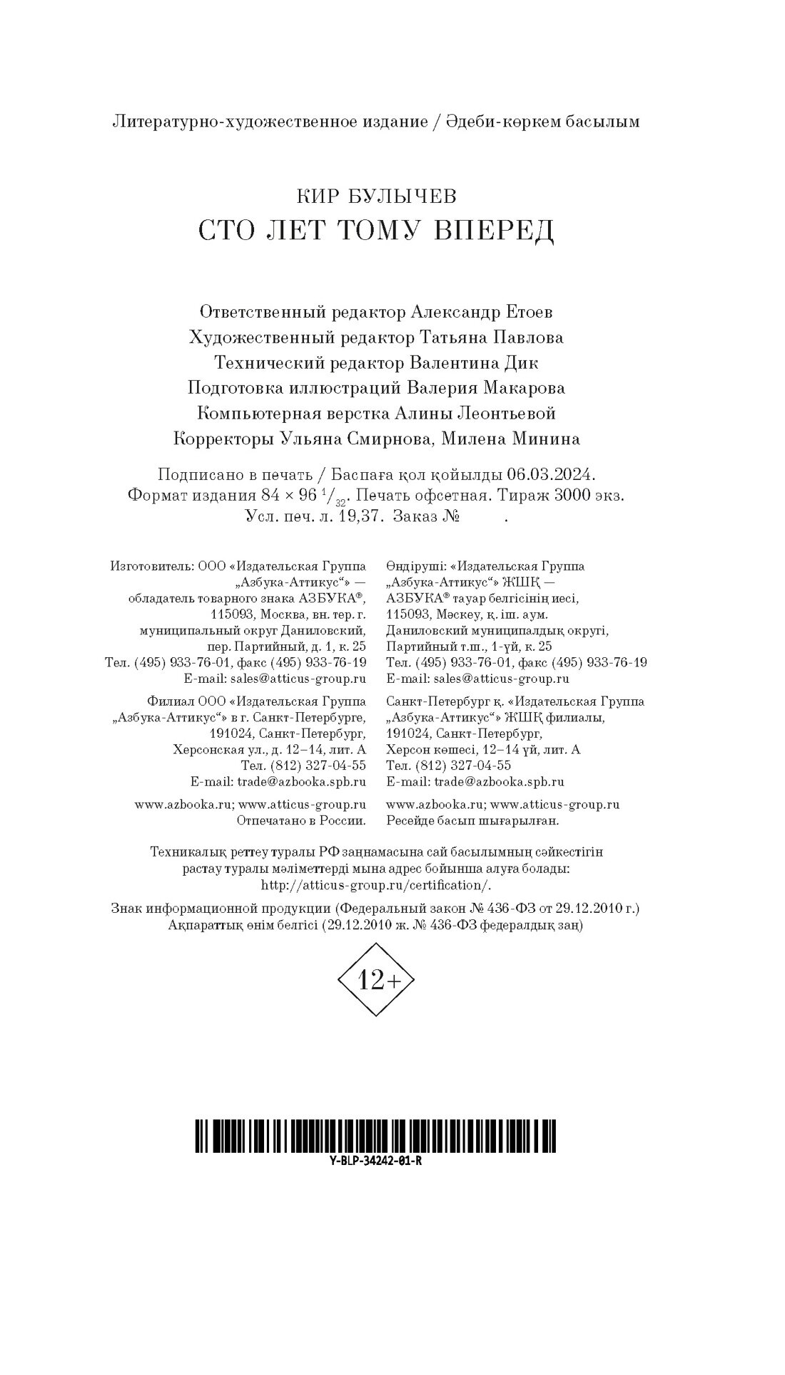 Сто лет тому вперед: повесть (Кир Булычев); Азбука, 2024