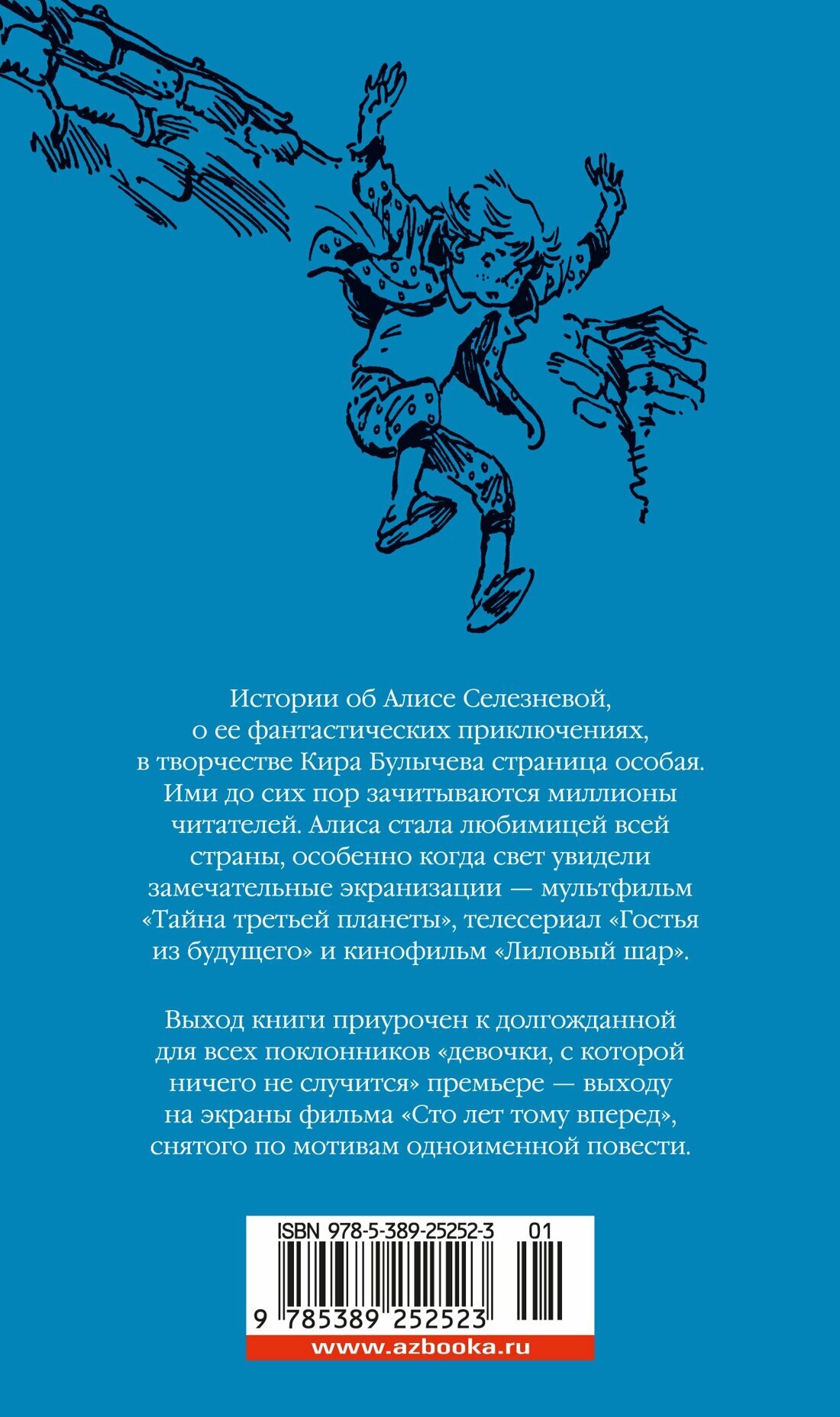 Кир Булычев — вторая величина в отечественной фантастике XX века после братьев Стругацких. Несколько поколений читателей выросло на его книгах, а первая читательская любовь долговечна и с годами не остывает. Основатель Великого Гусляра, крестный папа Алисы Селезневой, девочки из будущего Земли, лоцман на реке Хронос, соединяющей во времени разные берега России, — Булычев многомерен, как сама жизнь, в его литературной вселенной есть место и шутливому розыгрышу, и едкой, беспощадной иронии, и мудрости ученого и провидца. Истории об Алисе Селезневой, о ее фантастических приключениях, в творчестве Кира Булычева страница особая. Ими до сих пор зачитываются миллионы читателей. Алиса стала любимицей всей страны, особенно когда свет увидели замечательные экранизации — мультфильм «Тайна третьей планеты», телесериал «Гостья из будущего» и кинофильм «Лиловый шар». Выход книги приурочен к долгожданной для всех поклонников «девочки, с которой ничего не случится» премьере — выходу на экраны фильма «Сто лет тому вперед», снятого по мотивам одноименной повести.