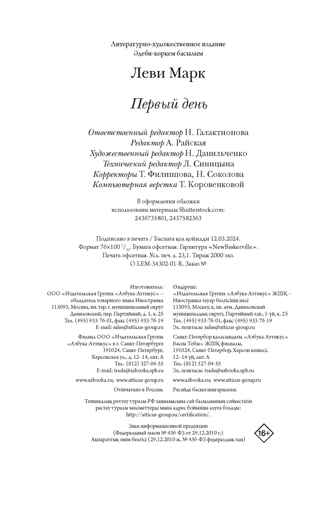 Книга: Первый день (Марк Леви); Иностранка, 2024