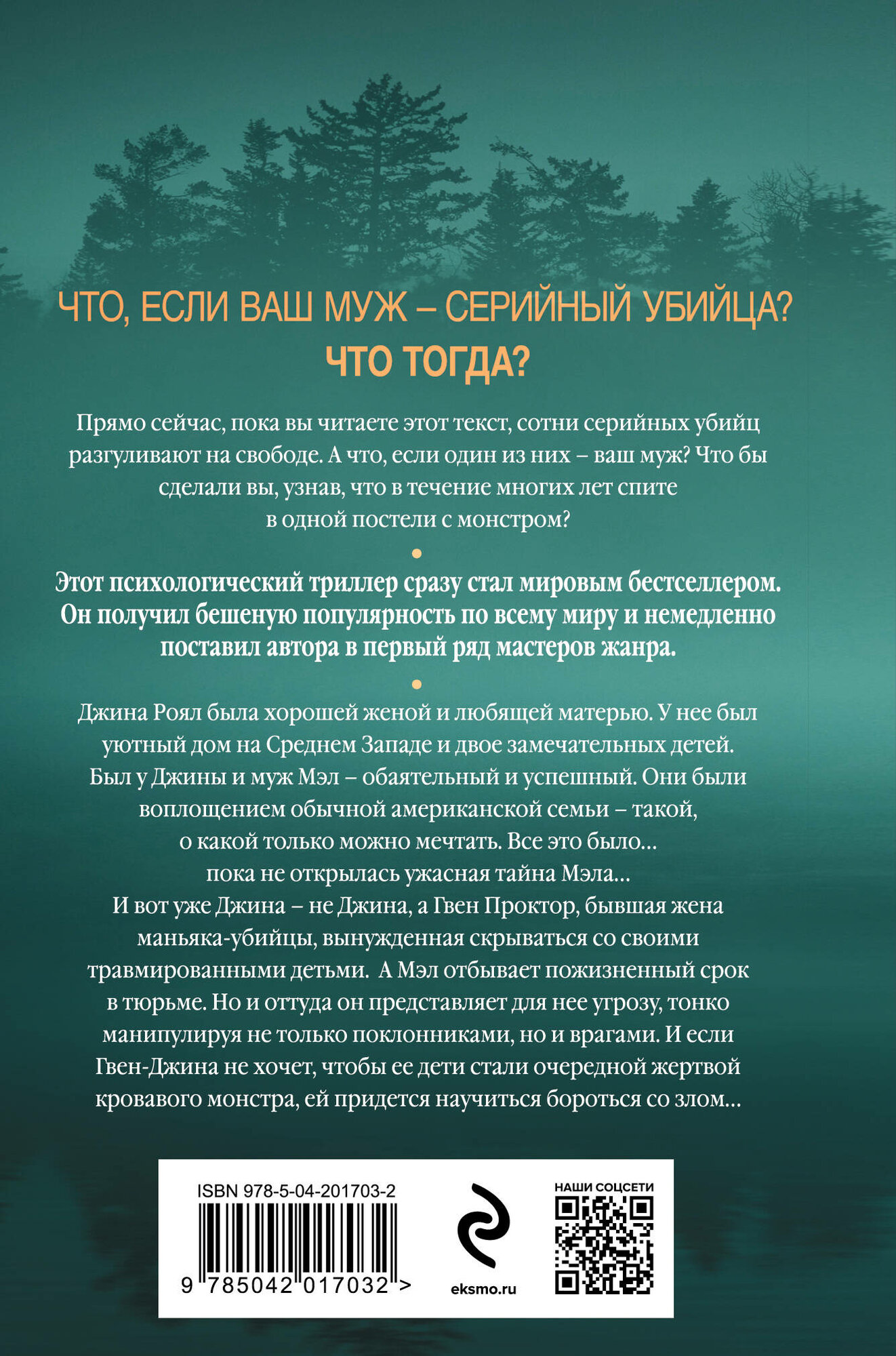 Джина Роял была хорошей женой и любящей матерью. У нее был уютный дом на Среднем Западе и двое замечательных детей. Был у Джины и муж Мэл – обаятельный и успешный. Они были воплощением обычной американской семьи – такой, о какой только можно мечтать. Все это было… пока не открылась ужасная тайна Мэла… И вот уже Джина – не Джина, а Гвен Проктор, бывшая жена маньяка-убийцы, вынужденная скрываться со своими травмированными детьми. А Мэл отбывает пожизненный срок в тюрьме. Но и оттуда он представляет для нее угрозу, тонко манипулируя не только поклонниками, но и врагами. И если Гвен-Джина не хочет, чтобы ее дети стали очередной жертвой кровавого монстра, ей придется научиться бороться со злом…