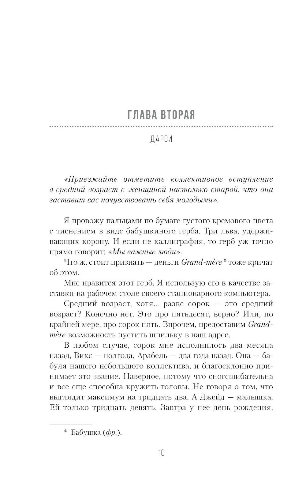 Отпуск мечты может обернуться самым страшным кошмаром… Добро пожаловать в Прованс! Старые винодельни, живописные лавандовые поля и… готические замки, полные нераскрытых тайн. Именно сюда Серафина Демаржеласс, владелица шато, приглашает погостить и вспомнить былое свою внучку и трех ее подруг. Вот только шумная вечеринка заканчивается трагедией: Серафина зверски убита, а в доме нет посторонних… На чердаке завывает ветер, старые доски жалобно скрипят, и подозрения растут с каждой минутой. Кто мог желать смерти милой старушке? Неужели дело в деньгах? Или все куда запутаннее? В тот же вечер кто-то начинает атаковать девушек с анонимного аккаунта, владелец которого, кажется, знает о них все. Четырем подругам предстоит понять: есть секреты, за которые стоит убивать… «Детальная, живая проза, раскрывающая одну тайну за другой… Триллер, которым стоит насладиться». — Тоска Ли, автор бестселлеров по версии New York Times «В лучших традициях классического герметичного детектива Агаты Кристи!» — Kirkus Reviews
