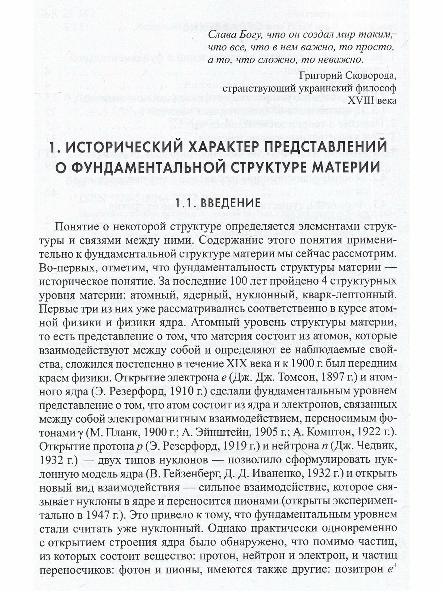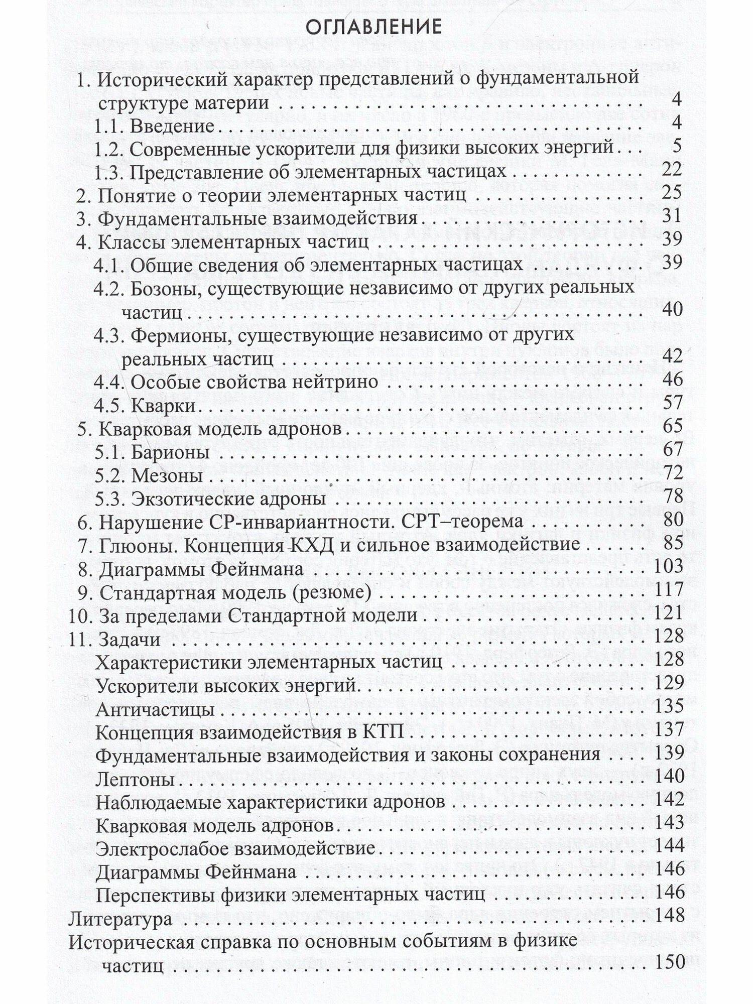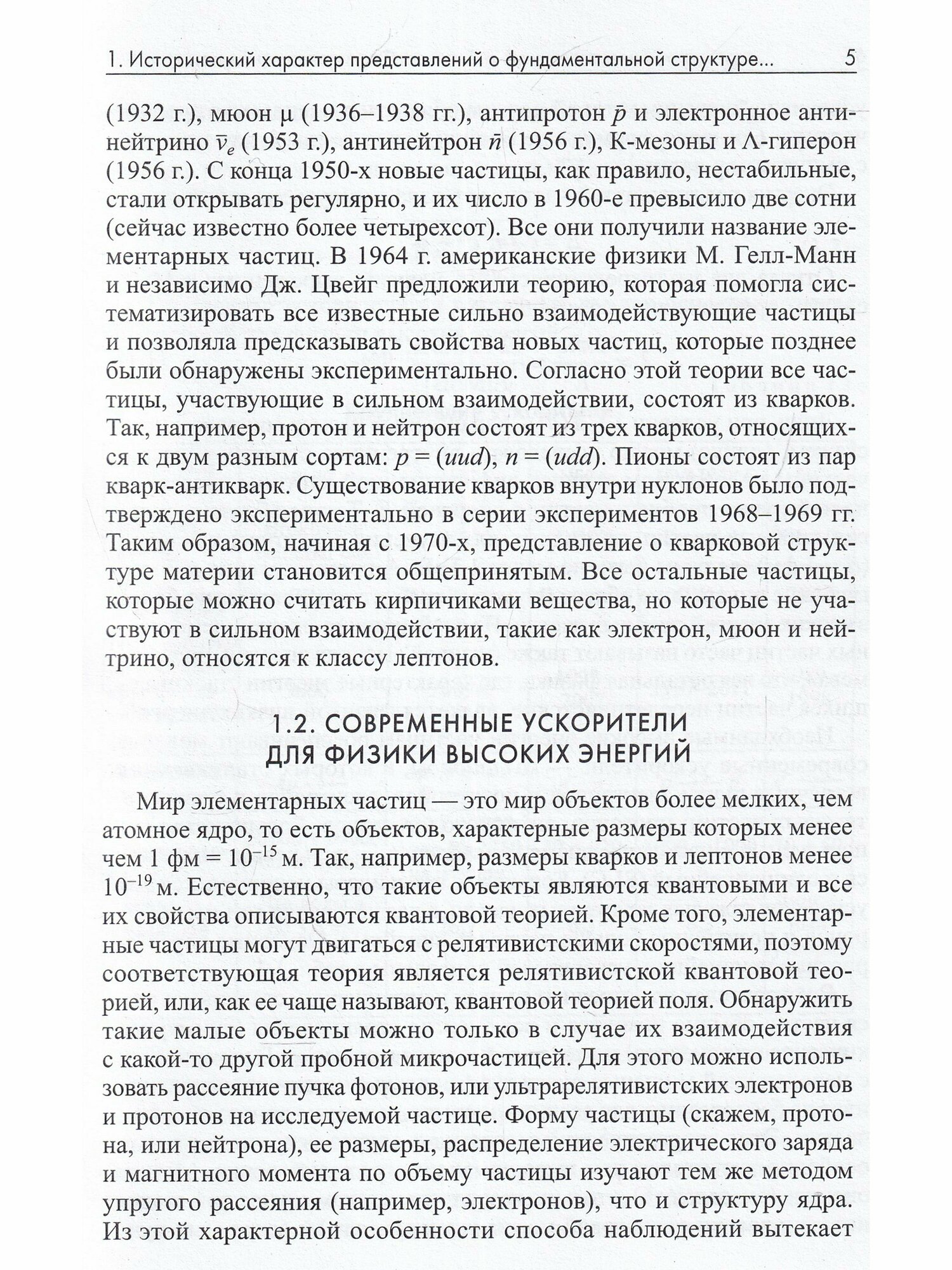 Настоящее пособие является составной частью УМК по курсу «Общая и экспериментальная физика» и отражает современное состояние преподавания раздела «Физика атомного ядра и элементарных частиц». Оно призвано заполнить брешь, возникшую за последние несколько десятков лет между современными представлениями о фундаментальной структуре материи в кругу специалистов и теми, которые можно найти в учебниках по курсу общей физики. В доступной для студентов форме излагаются универсальные методологические принципы и представления, на основе которых строятся современные фундаментальные теории и определяются классы элементарных частиц: концепция взаимодействия в квантовой теории поля, концепция вакуума, понятие об эффективных и фундаментальных взаимодействиях, о природе элементарных и фундаментальных частиц. На основе этих принципов дано краткое описание всех классов элементарных частиц и их взаимодействий, входящих в Стандартную модель. Обсуждается экспериментальная основа Стандартной модели, ее границы применимости и возможность расширения. Пособие содержит новейшую информацию, снабжено задачами, примерами решения задач и исторической справкой. Второе издание дополнено материалами, которые освещают основные события в физике фундаментальных взаимодействий, произошедшие за последние годы: открытие бозона Хиггса, кварк-глюонной плазмы, тетракварков и пентакварков, гравитационных волн, прогресс в исследовании нейтринных осцилляций и пр. Обсуждаются новые задачи, решающиеся на Большом Адронном Коллайдере, и программы исследований на ускорителях, вступающих в строй в ближайшие год-два. Пособие может помочь преподавателю в изложении материала, ранее не представленного в учебниках, и использоваться в качестве справочника-путеводителя по идеям и фактам, лежащим в основе физики элементарных частиц. Пособие может быть рекомендовано студентам физических специальностей в качестве основной литературы и в качестве дополнительной литературы - всем студентам, изучающим общую физику.