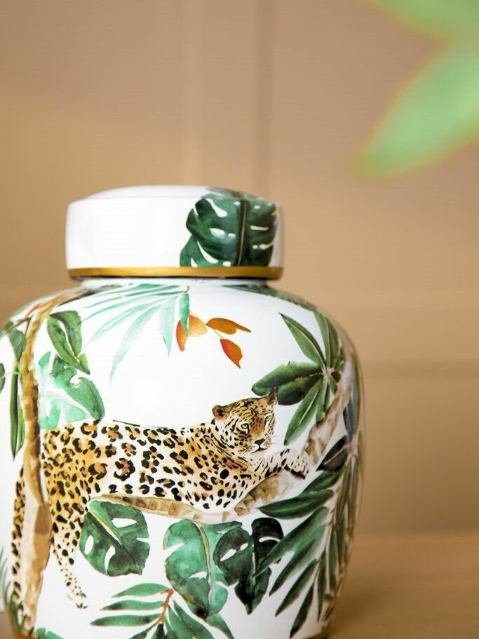 Декоративная ваза с классическим силуэтом и очаровательной цветовой гаммой, выполненная из фарфора с ручной росписью мотивами природной сафари, привнесет вневременное очарование в ваш домашний декор. Мотивы зеленой листвы в окружении крадущегося ягуара, создадут уникальную и незабываемую картину, которая обязательно украсит вашу гостиную, столовую, спальню или прихожую. Поставьте ее как отдельный элемент декора, или в коллекции с другими изделиями, эта ваза прекрасна в любом интерьере. Размер: 20х20х24см. Материал: Фарфор. Вес изделия: 1,95 кг. Компания "GLASAR" более 30 лет радует своих покупателей эксклюзивной продукцией для создания неподражаемого стиля, красоты и уюта в каждом доме. Ассортимент коллекционных изделий позволит подобрать товары в одной цветовой гамме для создания дизайнерских композиций. Вазы представлены в различном ассортименте: напольные, настольные, интерьерные, декоративные, под старину, с крышкой, ручками. Различные конфигурации: классические, тематические, геометрические: овальные, квадратные, круглые, прямоугольные; в виде женского и мужского образа, в форме животных. Различные стили: дворцовый, классический, винтажный, античный, модерн, лофт. Вазы выполнены из различных материалов: фарфор, бронза, керамика, полисмолы, железо и другие. Это универсальный декор для комнаты, дома, дачи, коттеджа, квартиры, студии, салона красоты, ресторана, кафе, который может стать центральным элементом в любом интерьере или дополнит его стильной деталью. Изделие великолепно украсит ваш интерьер в гостиной, спальне, прихожей, коридоре, зале, холле, столовой, детской, на кухне или в любом другом пространстве вашего дома, разместите его в офисе или в зоне ресепшен. Ваза - это отличный подарок маме, папе, бабушке, дедушке, любимой, любимому, мужу, жене, дочке, сыну, сестре, брату, тете, дяде, подруге, другу, коллеге, директору. Прекрасный повод преподнести его на юбилей, день рождения, свадьбу, новоселье, 8 марта, 23 февраля, Новый год, Рождество.