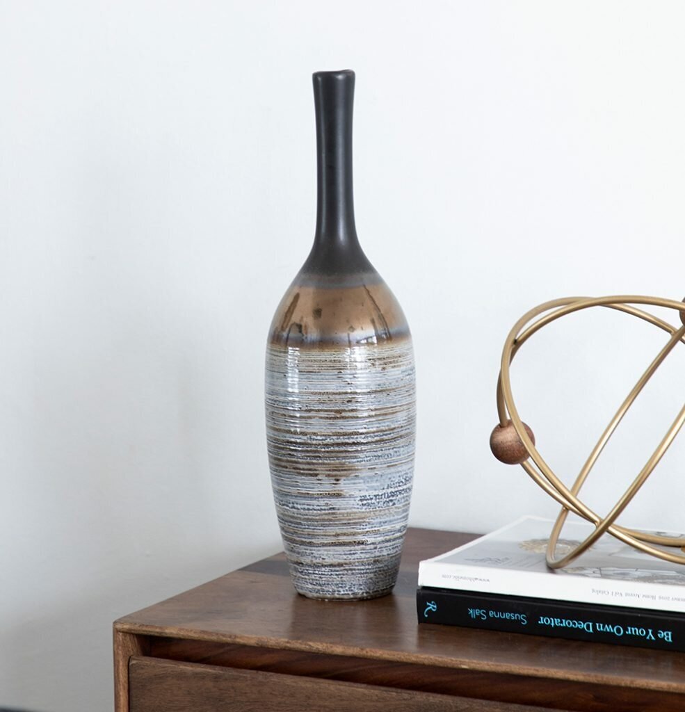 Ваза с узором в нейтральных тонах. Универсальная форма, коричнево-медная отделка и привлекательный современный вид делают эту вазу классическим дополнением к любой поверхности.