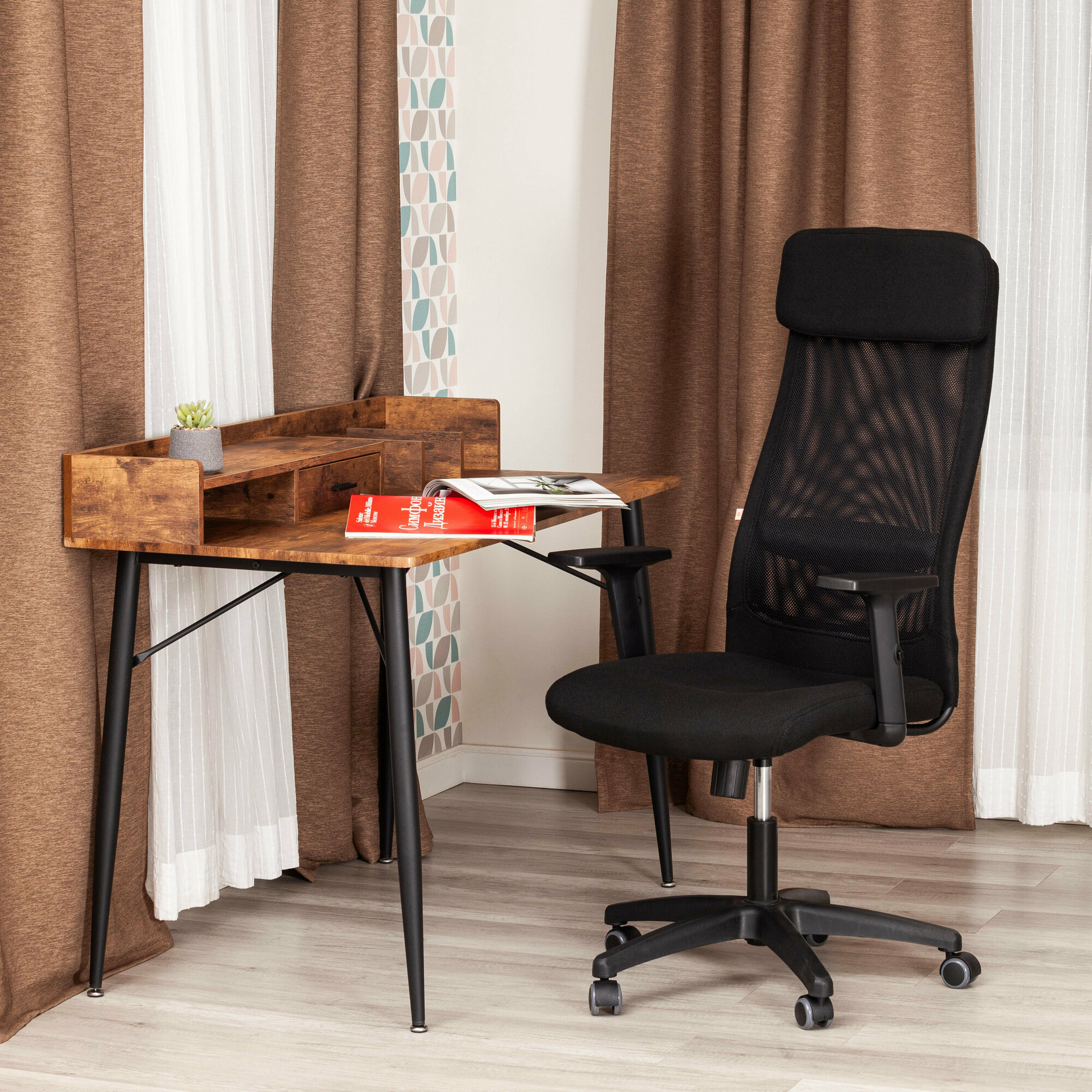 Материалы плотные. Пластик без запаха приятный на ощупь. Поддержка поясницы (высота не регулируется).
