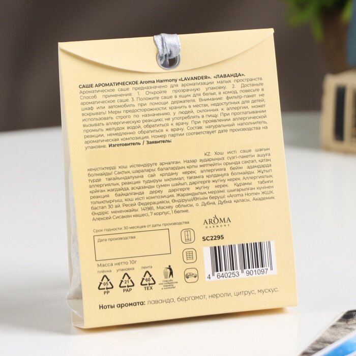 | Модель продукта | Саше аромат Spring LAVENDER 10г желтый |