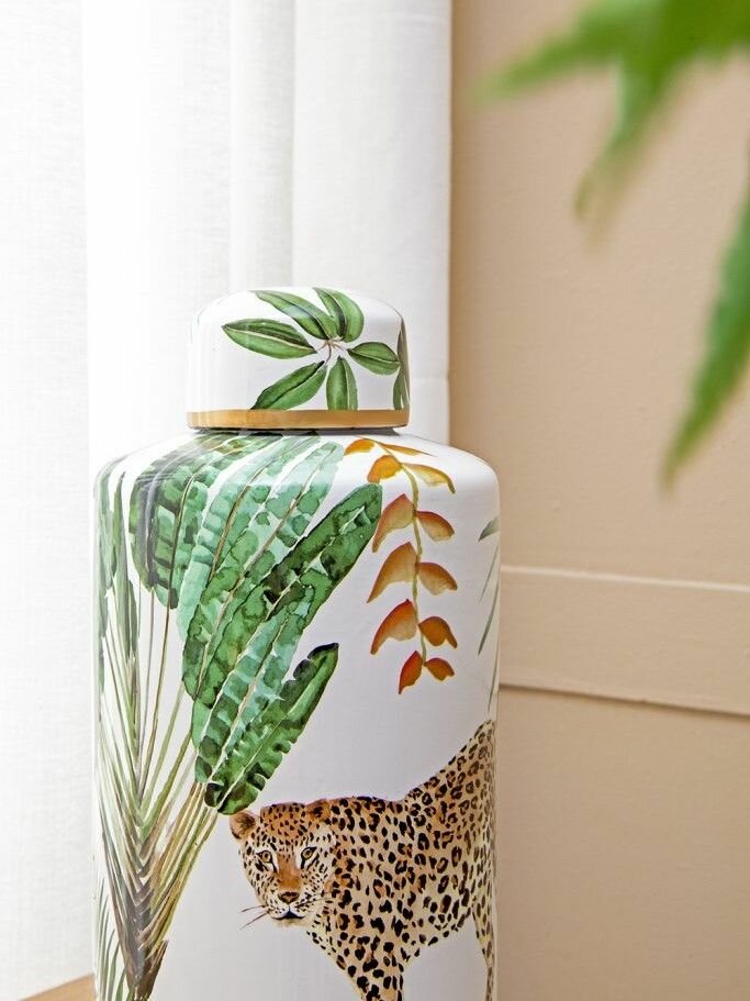 Декоративная ваза с классическим силуэтом и очаровательной цветовой гаммой, выполненная из фарфора с ручной росписью мотивами природной сафари, привнесет вневременное очарование в ваш домашний декор. Мотивы зеленой листвы в окружении крадущегося ягуара, создадут уникальную и незабываемую картину, которая обязательно украсит вашу гостиную, столовую, спальню или прихожую. Поставьте ее как отдельный элемент декора, или в коллекции с другими изделиями, эта ваза прекрасна в любом интерьере. Размер: 15х15х35см. Материал: Фарфор. Вес изделия: 2,275 кг. Компания "GLASAR" более 30 лет радует своих покупателей эксклюзивной продукцией для создания неподражаемого стиля, красоты и уюта в каждом доме. Ассортимент коллекционных изделий позволит подобрать товары в одной цветовой гамме для создания дизайнерских композиций. Вазы представлены в различном ассортименте: напольные, настольные, интерьерные, декоративные, под старину, с крышкой, ручками. Различные конфигурации: классические, тематические, геометрические: овальные, квадратные, круглые, прямоугольные; в виде женского и мужского образа, в форме животных. Различные стили: дворцовый, классический, винтажный, античный, модерн, лофт. Вазы выполнены из различных материалов: фарфор, бронза, керамика, полисмолы, железо и другие. Это универсальный декор для комнаты, дома, дачи, коттеджа, квартиры, студии, салона красоты, ресторана, кафе, который может стать центральным элементом в любом интерьере или дополнит его стильной деталью. Изделие великолепно украсит ваш интерьер в гостиной, спальне, прихожей, коридоре, зале, холле, столовой, детской, на кухне или в любом другом пространстве вашего дома, разместите его в офисе или в зоне ресепшен. Ваза - это отличный подарок маме, папе, бабушке, дедушке, любимой, любимому, мужу, жене, дочке, сыну, сестре, брату, тете, дяде, подруге, другу, коллеге, директору. Прекрасный повод преподнести его на юбилей, день рождения, свадьбу, новоселье, 8 марта, 23 февраля, Новый год, Рождество.