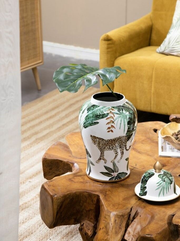 Декоративная ваза с классическим силуэтом и очаровательной цветовой гаммой, выполненная из фарфора с ручной росписью мотивами природной сафари, привнесет вневременное очарование в ваш домашний декор. Мотивы зеленой листвы в окружении крадущегося ягуара, создадут уникальную и незабываемую картину, которая обязательно украсит вашу гостиную, столовую, спальню или прихожую. Поставьте ее как отдельный элемент декора, или в коллекции с другими изделиями, эта ваза прекрасна в любом интерьере. Размер: 24х24х46см. Материал: Фарфор. Вес изделия: 3 кг. Компания "GLASAR" более 30 лет радует своих покупателей эксклюзивной продукцией для создания неподражаемого стиля, красоты и уюта в каждом доме. Ассортимент коллекционных изделий позволит подобрать товары в одной цветовой гамме для создания дизайнерских композиций. Вазы представлены в различном ассортименте: напольные, настольные, интерьерные, декоративные, под старину, с крышкой, ручками. Различные конфигурации: классические, тематические, геометрические: овальные, квадратные, круглые, прямоугольные; в виде женского и мужского образа, в форме животных. Различные стили: дворцовый, классический, винтажный, античный, модерн, лофт. Вазы выполнены из различных материалов: фарфор, бронза, керамика, полисмолы, железо и другие. Это универсальный декор для комнаты, дома, дачи, коттеджа, квартиры, студии, салона красоты, ресторана, кафе, который может стать центральным элементом в любом интерьере или дополнит его стильной деталью. Изделие великолепно украсит ваш интерьер в гостиной, спальне, прихожей, коридоре, зале, холле, столовой, детской, на кухне или в любом другом пространстве вашего дома, разместите его в офисе или в зоне ресепшен. Ваза - это отличный подарок маме, папе, бабушке, дедушке, любимой, любимому, мужу, жене, дочке, сыну, сестре, брату, тете, дяде, подруге, другу, коллеге, директору. Прекрасный повод преподнести его на юбилей, день рождения, свадьбу, новоселье, 8 марта, 23 февраля, Новый год, Рождество.
