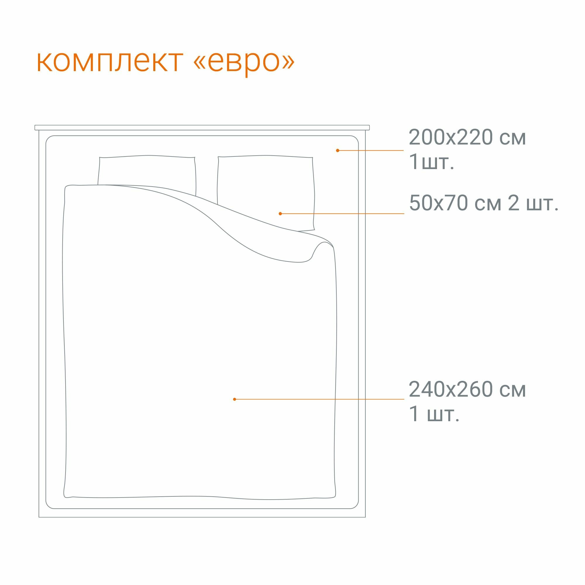 | Комплектация | Пододеяльник 200x220см - 1шт; простыня 240x260см - 1шт; наволочка 50x70см - 2шт |