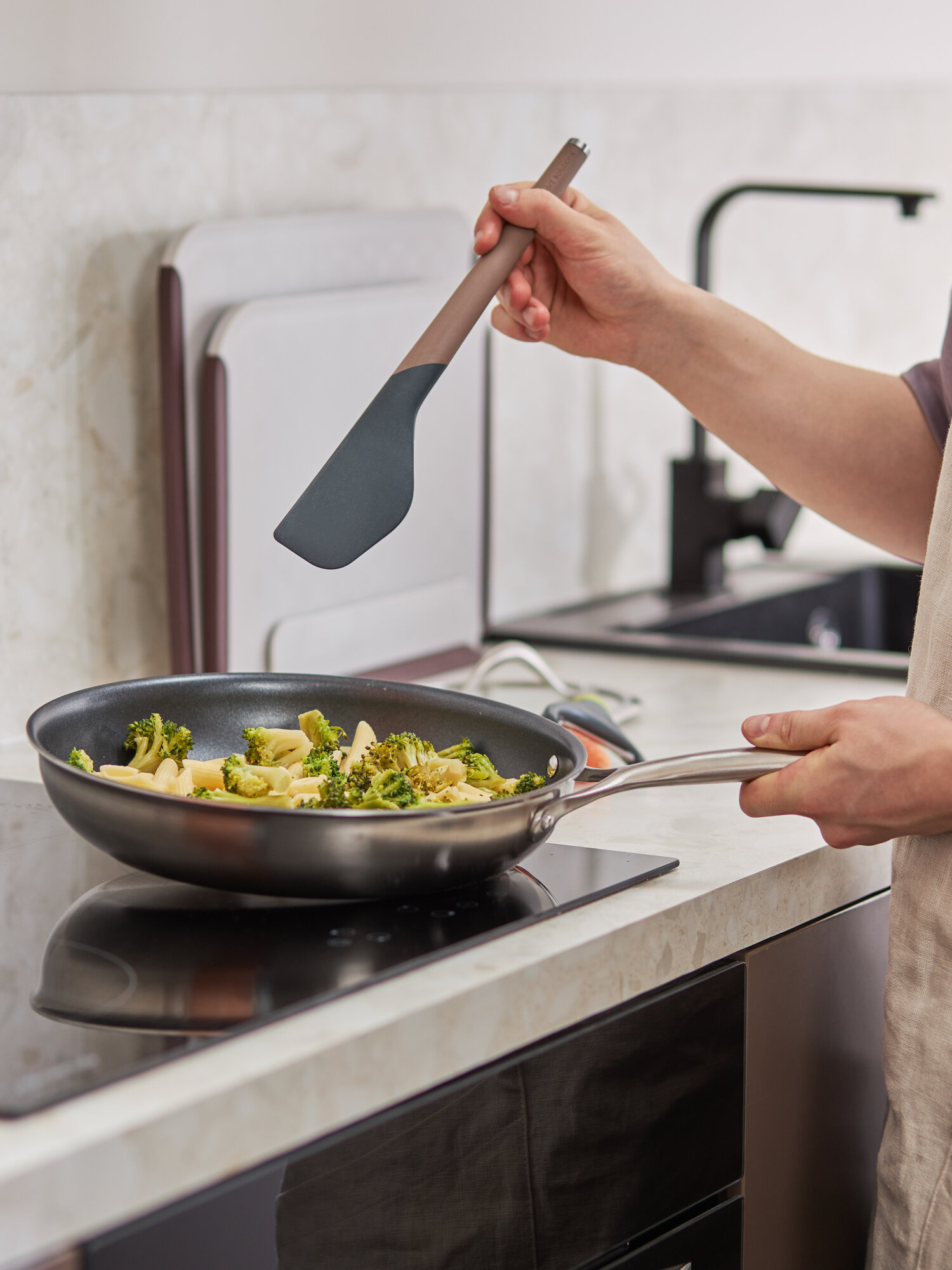 Коллекция кухонных инструментов SmartChef объединяет в себе лаконичный дизайн, высокую функциональность и инновационные материалы, чтобы приготовление блюд доставляло удовольствие, а пространство кухни выглядело стильным и организованным. Поверхности софт-тач дарят приятные тактильные ощущения и улучшают эргономику продуктов, делая их более удобными в использовании. Главное все предметы специально разработаны для использования с посудой, имеющей антипригарное покрытие.