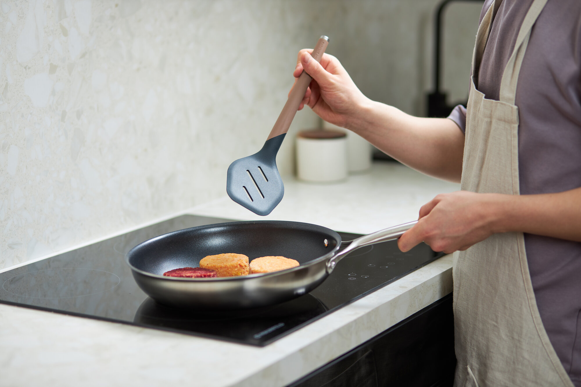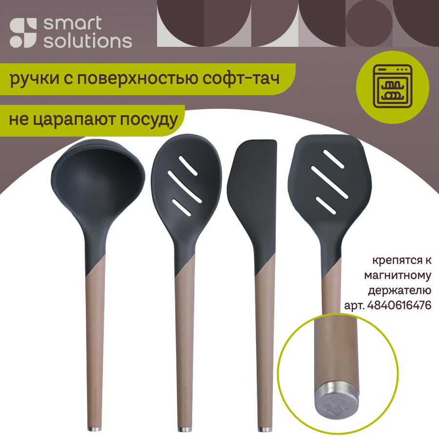 Коллекция кухонных инструментов SmartChef объединяет в себе лаконичный дизайн, высокую функциональность и инновационные материалы, чтобы приготовление блюд доставляло удовольствие, а пространство кухни выглядело стильным и организованным. Поверхности софт-тач дарят приятные тактильные ощущения и улучшают эргономику продуктов, делая их более удобными в использовании. Главное все предметы специально разработаны для использования с посудой, имеющей антипригарное покрытие.