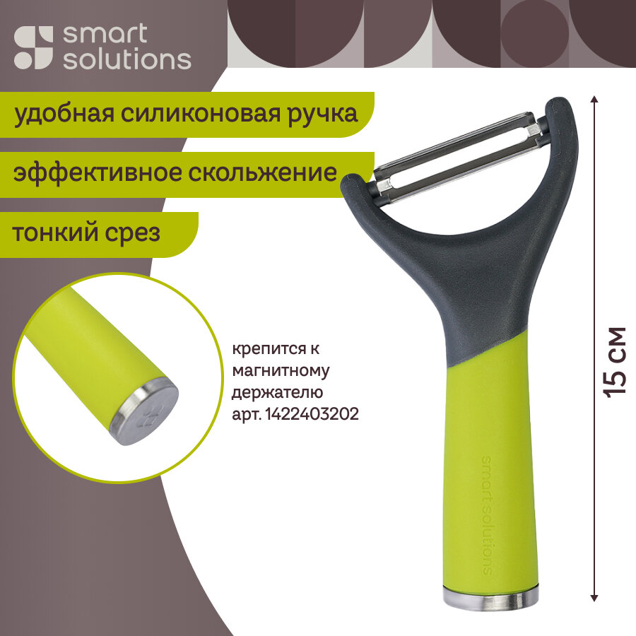 - Стальное лезвие обладает высокой прочностью и расположено под определенным углом для срезания кожуры оптимальной толщины.