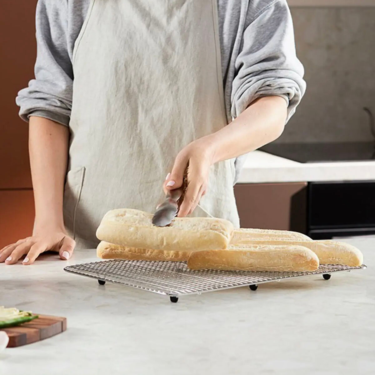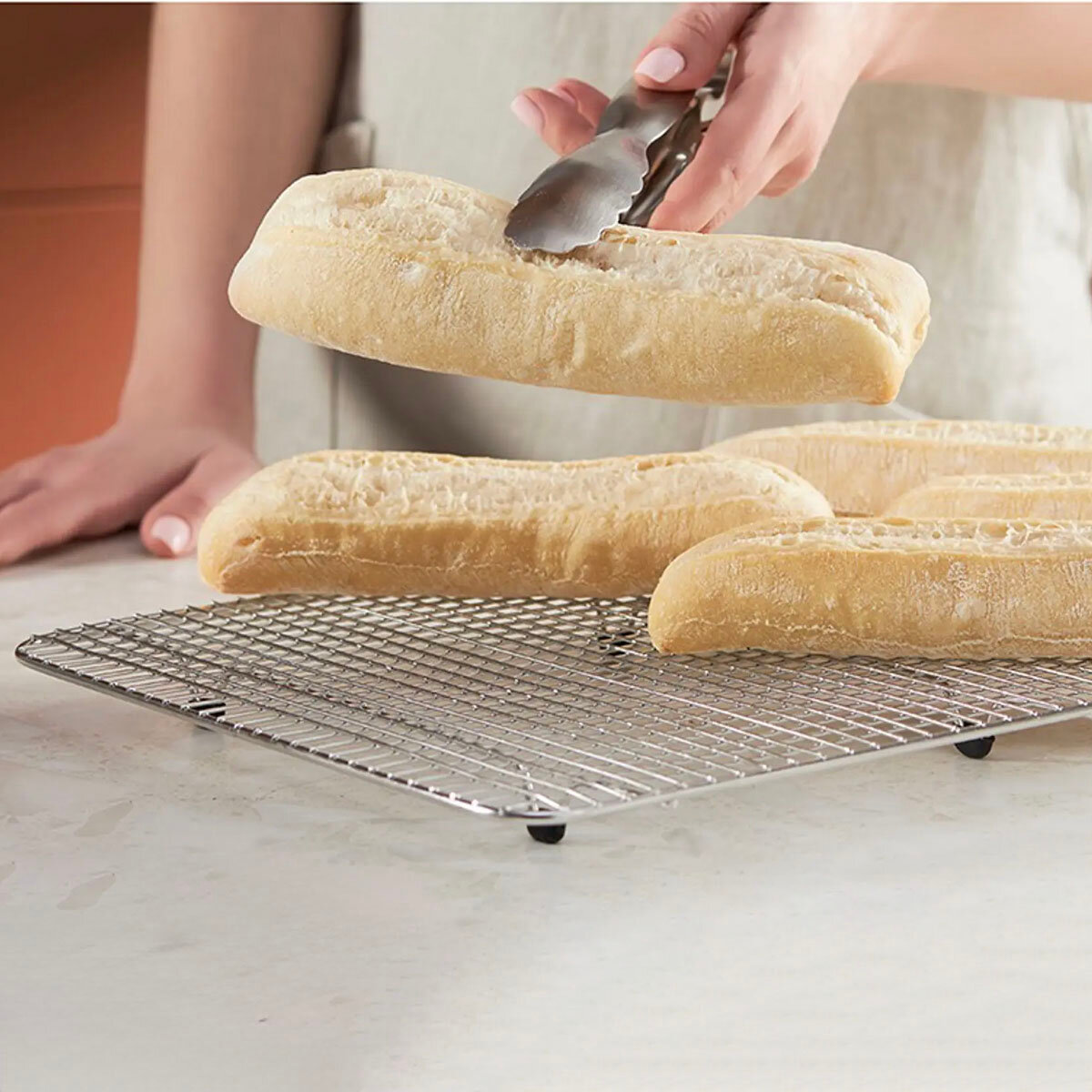 - За счет беспрепятственной циркуляции воздуха выпечка быстро и равномерно охлаждается без образования конденсата, смягчающего нижнюю корочку.