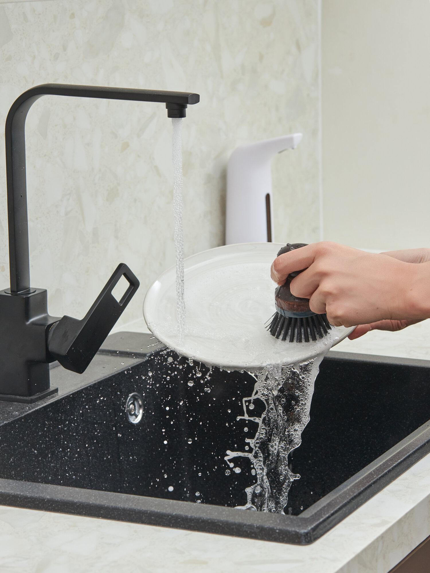 - За счет компактности аксессуар не занимает много места на раковине, коврике для сушки посуды или в органайзере.