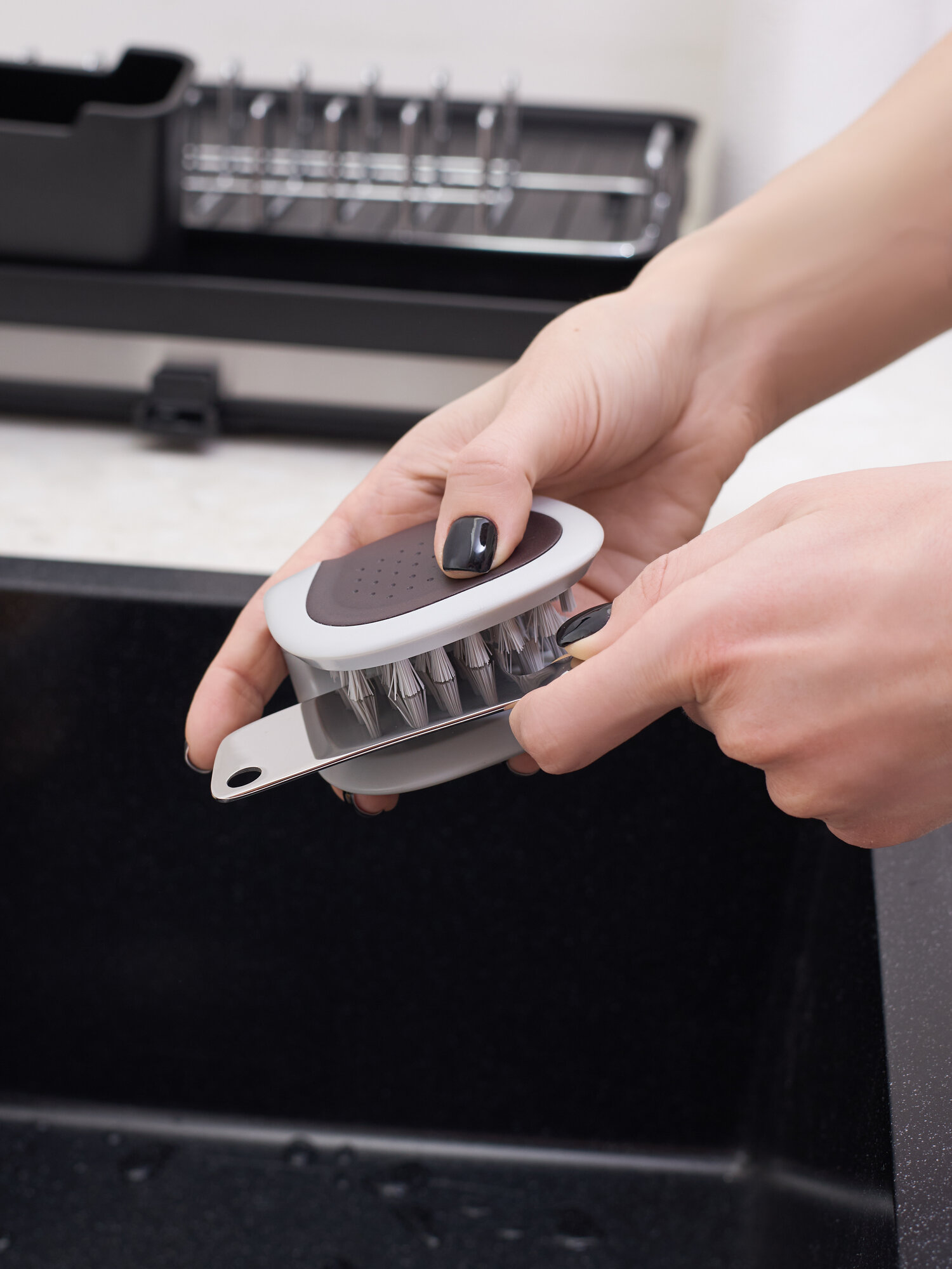 - Благодаря текстурированной поверхности щетка надежно сидит в руке и не выскальзывает во время использования.