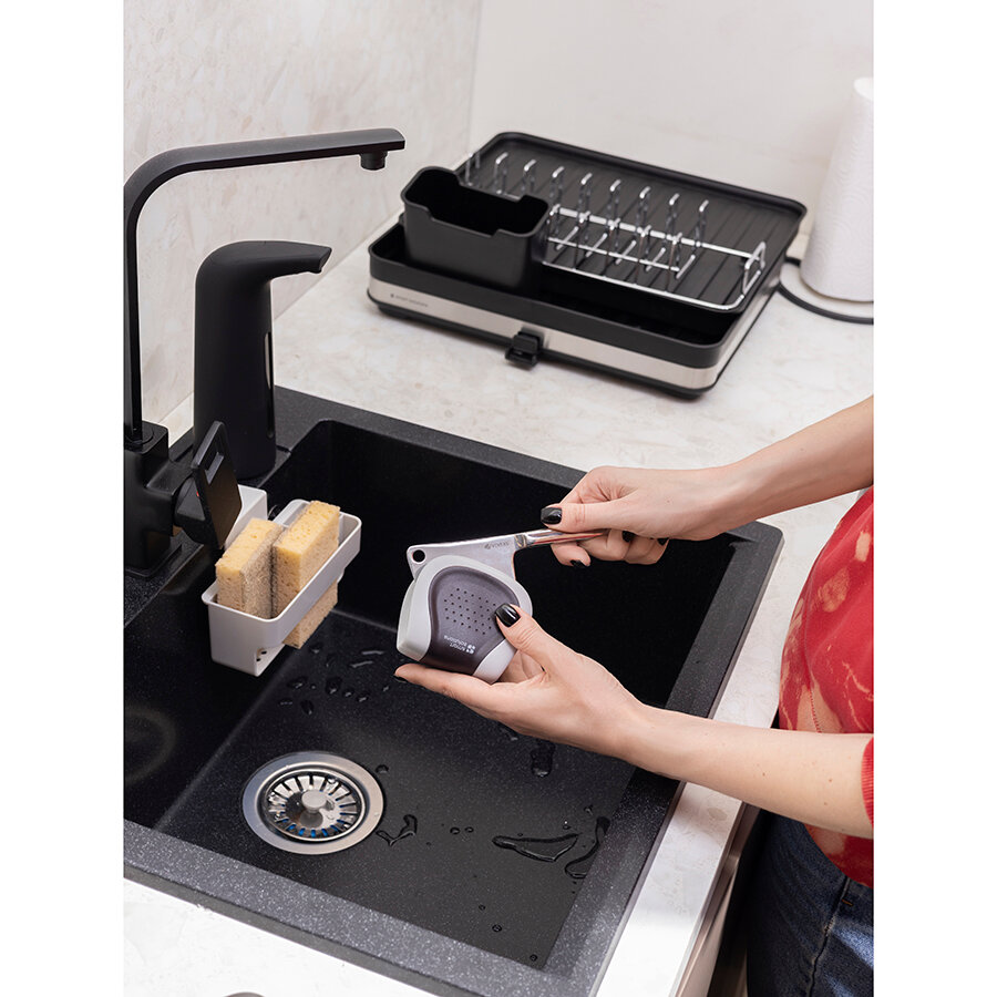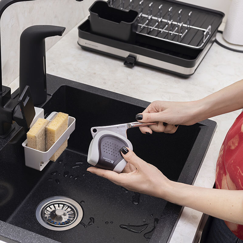 - За счет компактности аксессуар занимает минимум места на раковине, в ящике стола или органайзере.