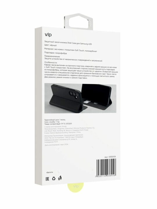 Чехол-книжка VLP Shell Case для Galaxy A35 черный