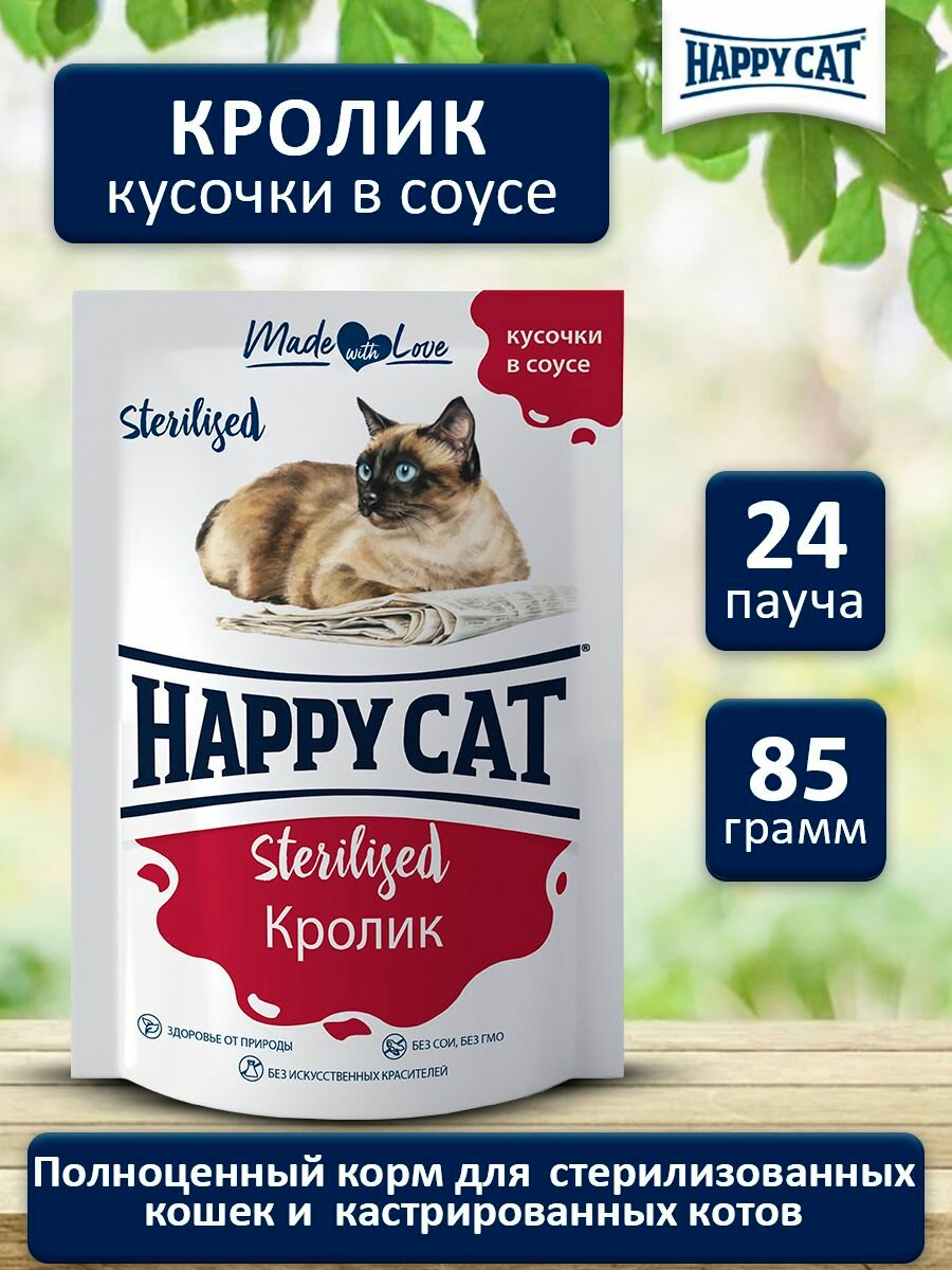 Happy Cat обеспечивает правильное, разнообразное питание кошки. По аналогии с сухими кормами, влажные корма Happy Cat STERILIZED имеют сбалансированный состав и в полной мере покрывает суточные потребности животных в питательных веществах и энергии и могут служить полноценным ежедневным рационом!