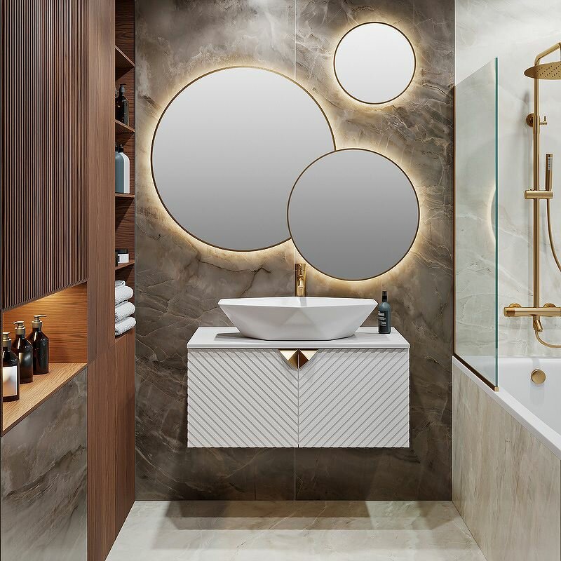 Тумба под раковину в ванную RUNO Андорра (подвесная) – это изысканность и утончённая роскошь в интерьере. Рифленые фасады визуально «оживляют» и «приводят в движение» всю обстановку комнаты, сохраняя при этом умиротворение и покой. Цвета корпуса и фасада имеют идеальное классическое цветовое сочетание глянцевого и матового белого цвета, которые идеально впишутся в любой интерьер ванной комнаты. Тумба с двумя распашными дверцами, дверцы оснащены петлями с доводчиками (верхняя с доводчиком, нижняя без доводчика). В комплекте: 2 ручки, навесы для крепления к стене. К тумбе для ванной комнаты подходят накладные керамические раковины: «TRE 48» (48х37см) - строгой прямоугольной формы с округлыми углами; «PALLA D41» (диаметр 41см) - раковина круглой геометрически правильной формы; «OVALE 50» (50х36см) - овальная геометрически правильная форма раковины; «TERZO 60» (59х39см) -асимметричная раковина, которую можно установить любой стороной; «Poligono» (64х40 см) – шестиугольная геометрически правильная форма раковины разбавлена четким гранями, которые напоминают грани обработанного кристалла в стиле изумрудной огранки; Sole» (диаметр 40 см) – раковина круглой геометрически правильной формы, с местом под смеситель; «Lavello» (48х37см) - раковина строгой прямоугольной формы с округлыми углами, с местом под смеситель; «Bella» (41х41) - раковина строгой квадратной формы с округлыми углами; «Nuovo» (51х39) - раковина строгой овальной формы, с местом под смеситель. И другие накладные раковины бренда RUNO. Мебель для ванной RUNO - красота и практичность в мелочах!
