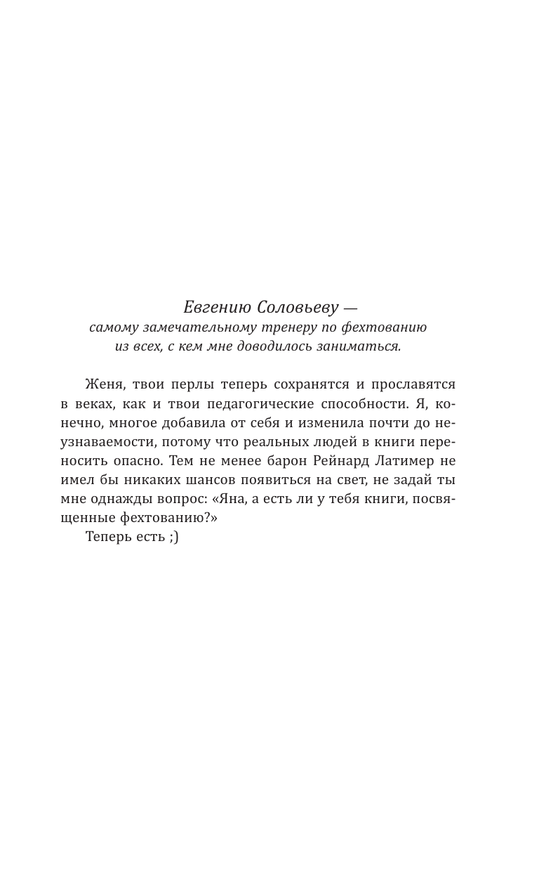 Мисс Фокс увлечена фехтованием и известна горячим нравом. Она любит свободу и приключения, а под подушкой держит… любовные романы таинственного Джона Вернона. Барон Рейнард Латимер — первый клинок Альбии. Он очень спокоен и ко всему относится с юмором. Даже к тетушке, которая хотела вырастить из него истинного джентльмена, а вырастила «варвара с джентльменскими замашками»… Но когда тетушка принялась наводнять дом незамужними благородными девицами, барон с радостью... сбежал , чтобы помочь родственнику расследовать похищение его дочерей. Нет, он не сыщик, но очень старается. И разве может Рейнард отказаться от помощи мисс Фокс, тем более что судьба сводит этих двоих снова и снова?..