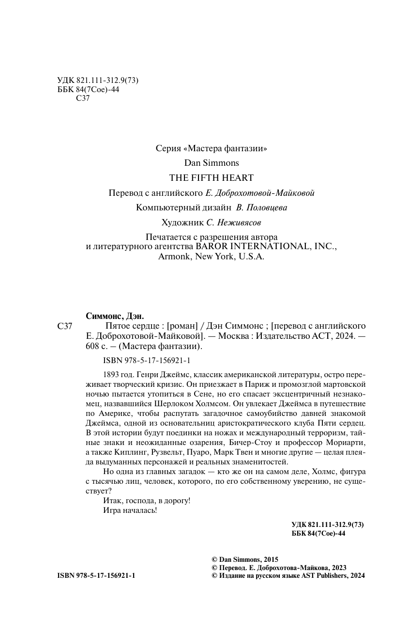 Книга: Пятое сердце (Дэн Симмонс); АСТ, 2024