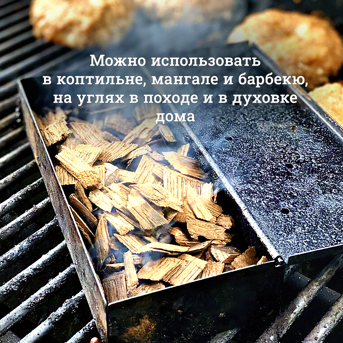 | Способ применения | замочить в воде, выложить ровным слоем на дно коптильни, поместить решетку с продуктом в коптильню, закрыть крышку, поставить на огонь, или выложить непосредственно на угли |