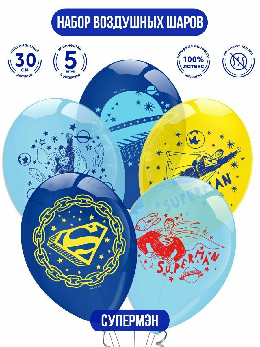 Шарики воздушные Nd play Супермен 30 см 5 шт