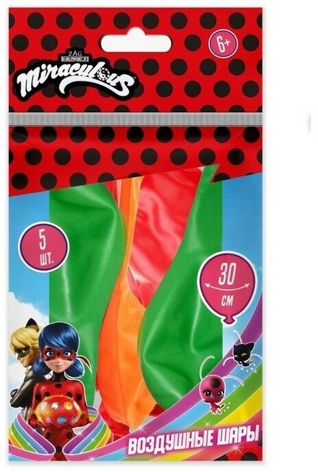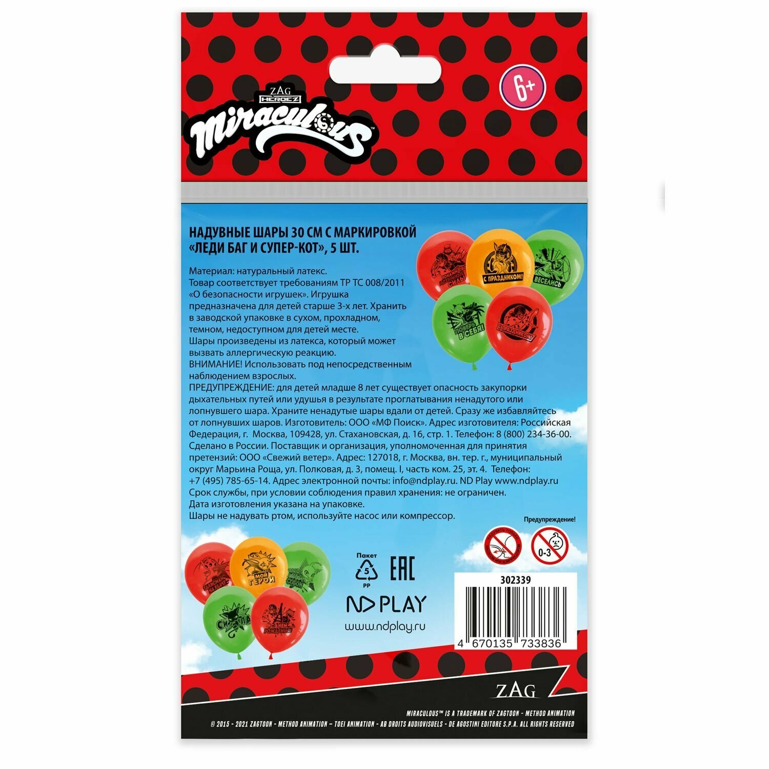 Шарики воздушные Nd play Леди Баг и супер кот 30 см 5 шт