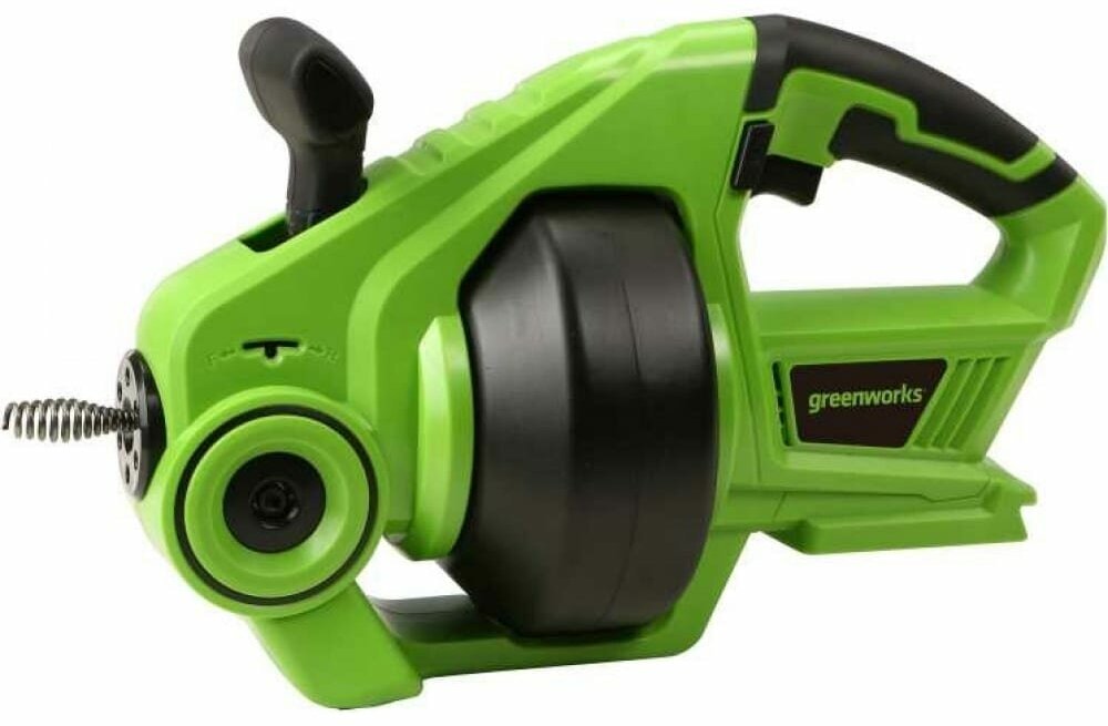 Аккумуляторная машина прочистная для труб Greenworks G24DA (без акк, без з/у) - это современный инструмент для прочистки сантехнических труб. Устройство осуществляет подачу троса с одновременным вращением рабочей спирали. Конструкция барабана предотвращает перекручивание троса. Переключение направления подачи троса осуществляется рукояткой управления, направление вращения - с помощью переключателя реверса, интенсивность вращения - силой нажатия на курок. Устройство позволяет выполнить необходимую работу, сохранив в чистоте руки и рабочее пространство.Трос легко моется. Устройство оснащено LED-подсветкой для работы в труднодоступных местах.